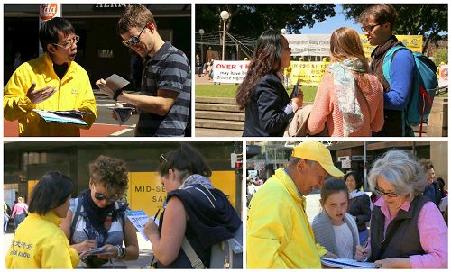 怀特(White)先生主动到法轮功真相摊位前签名,并与学员交谈。他说:“我了解过法轮功。是一种非常安宁,非常美好的修炼方式,使世界上很多人身心健康受益。重要的是,任何政府和任何政权对和平修炼的人行迫害都是不可原谅的。”“我认为,世界各国政府和政治人士都应该有勇气说实话,即使施行迫害的国家和政府是重要的贸易伙伴。因为没有任何事情的重要性能与停止现在正在发生的活摘器官相比。”他认为:“我们的总理应该向中国政府提出这个人权问题。”