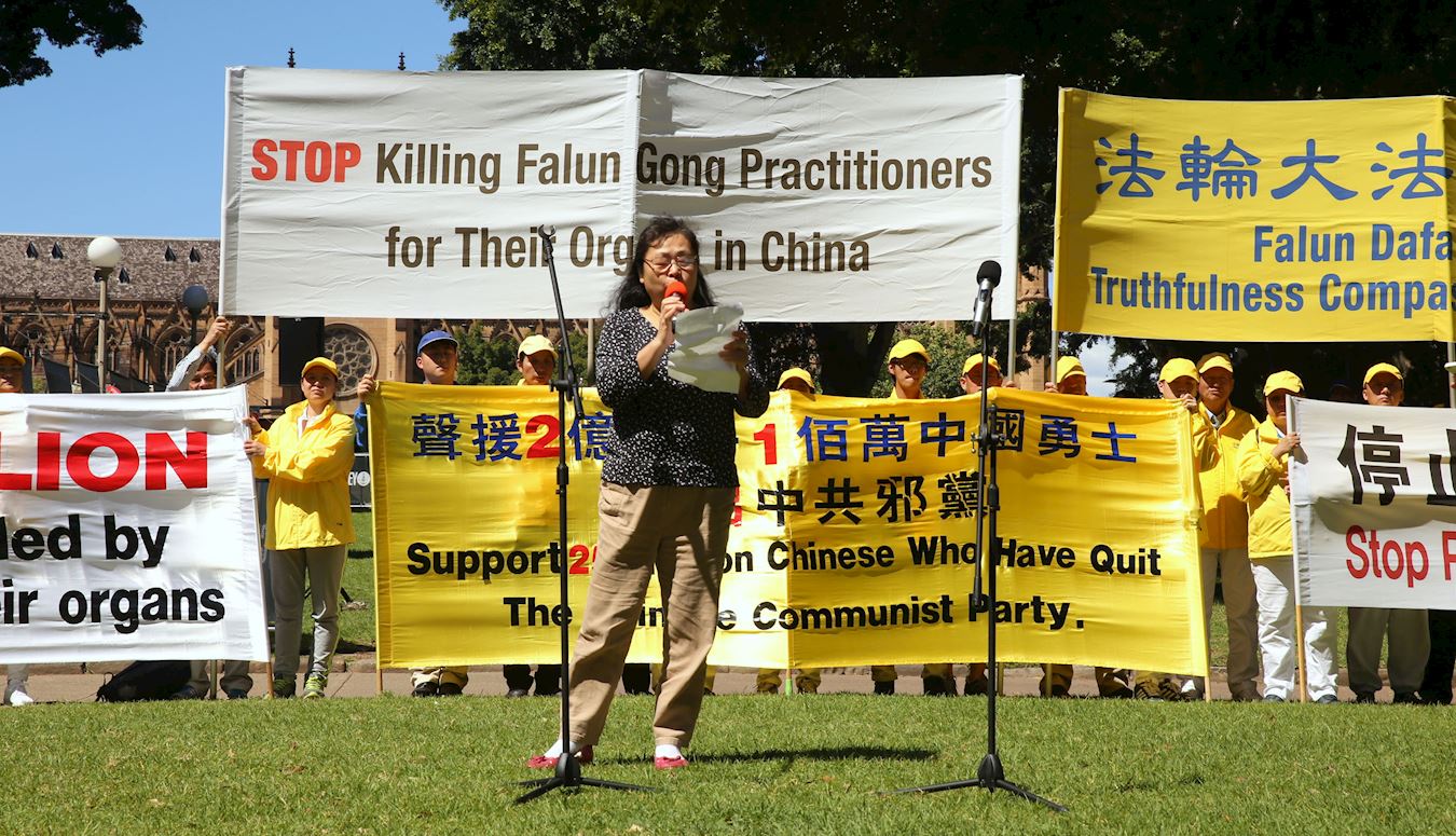 澳洲法轮大法协会负责人露西·赵女士在集会上说:六十七年前的十月一日,是中国人民在中共专制政权统治下承受无尽苦难的开始。六十七年间的各种政治运动令无数的家庭和个人蒙受苦难,一九九九年七月以来,大陆上亿的法轮功学员成为迫害对象,无数家庭被拆散,许许多多孩子成了孤儿,上百万法轮功学员被活摘器官。面对这样的罪恶,近两个多月以来已经有五万多名新州选民将他们关注此事的签名的真相明信片寄达澳洲总理和联邦各选区议员办公室。我们希望政府在民意面前不要再保持沉默,也希望社会各界继续敦促澳洲政府站出来,发出正义之声,为了受害者,也为了澳洲人民。