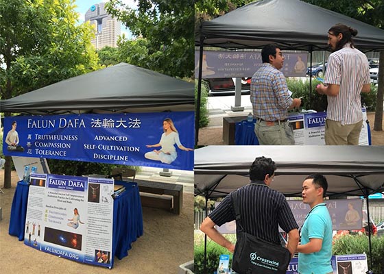 当地学员与市警察局联系,获准在达拉斯市政府广场上举办法轮大法信息日活动,向市政府工作人员及过往行人提供法轮大法信息。