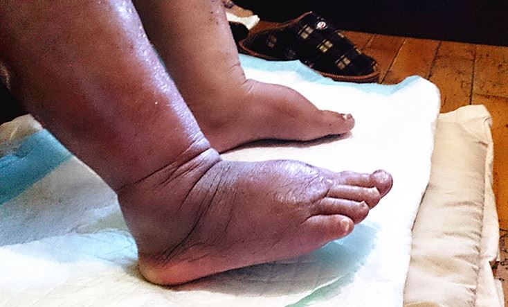 ![]() 全肿的两腿 | ![]() 胸部下全肿的腹部双腿双脚 |