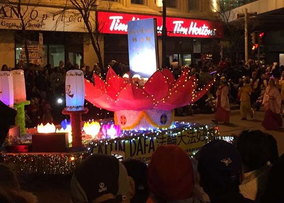 十一月十三日晚, 法轮功学员参加了加拿大温尼伯市(Winnipeg)全年最盛大的花车游行——圣诞花车游行,广受中西方民众欢迎。
