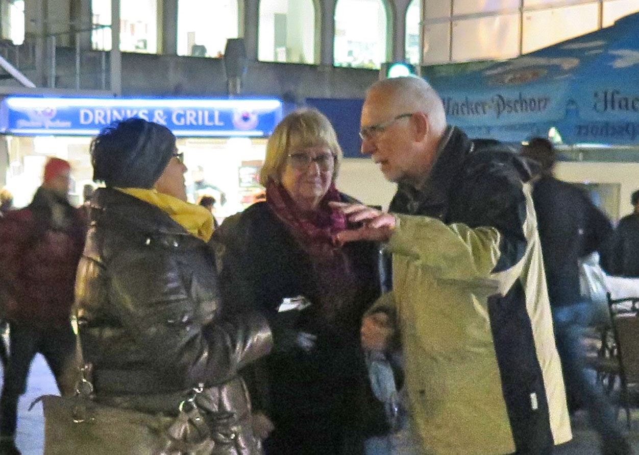 我们讲完真相后几个人会经常交流一下:今天心性哪里没守好,差在哪儿,哪些话应该怎么说才能让众生听明白等等,求名的心,妒嫉心大家都暴露出来,互相谈出自己的想法,对照法衡量,逐渐的由向外看别人讲的怎么样,变成找自己,心性提高的很快,我们的慈悲心也出来了,真的把警察当成了兄弟。