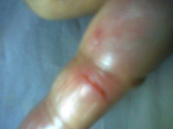 小指被拉开了一条口