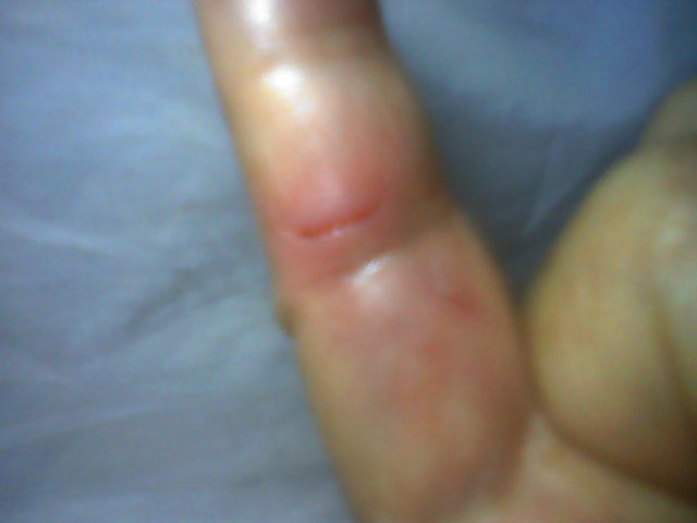 收拾客厅时,才发现我的手半边结了厚厚一层血(凝固了)。我洗去血后,才发现小指被拉开了一条口子,手指红肿,口子张着,很疼。他们既不消毒,也不止血。