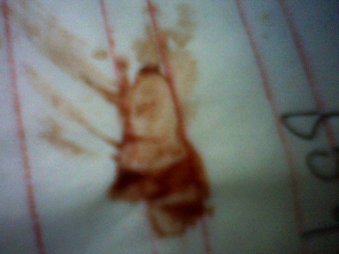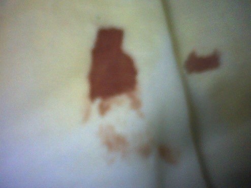 十来个人来来去去,把木质地板踩得很脏,我收拾时才发现洗净的袜子两只都滴上血了,沙发垫上好几处都是血,茶几面的垫上、纸上也是血,在我挣扎中,看到一人手拿一纸巾团,已被鲜红的血浸透,但后来没找到那团血纸。