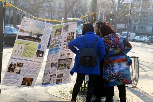 ![]() 图1-3:来巴黎旅游的中国大陆游客经过世界著名的埃菲尔铁塔附近的法轮功真相点时,许多人驻足阅读真相展板,了解真相。 |
