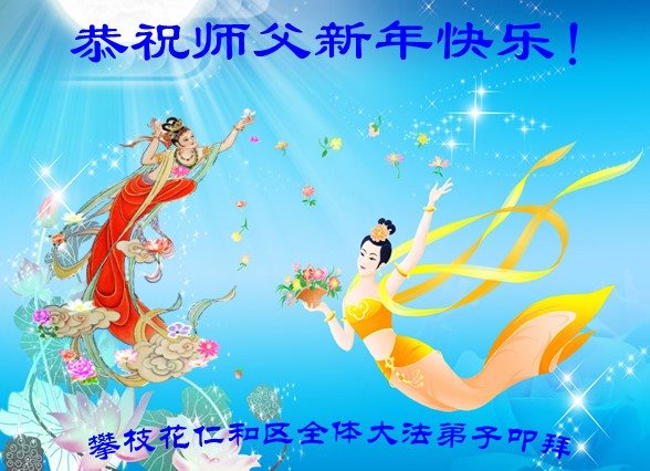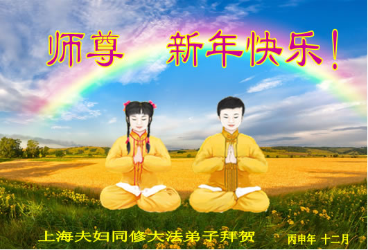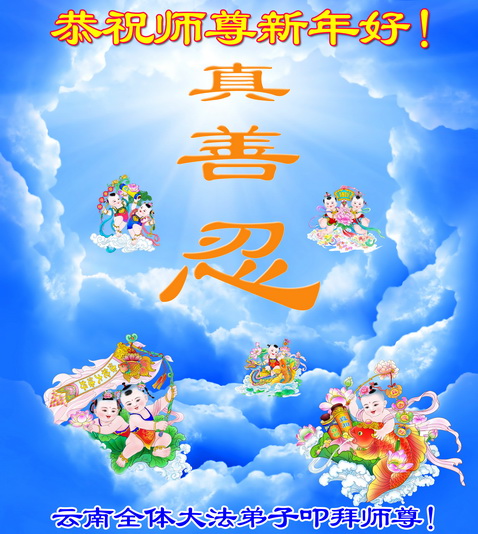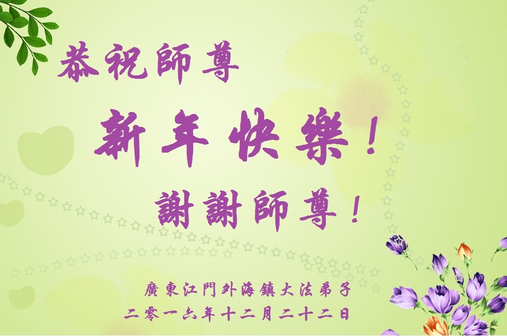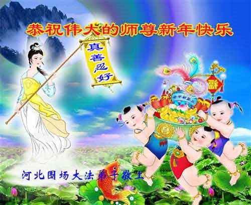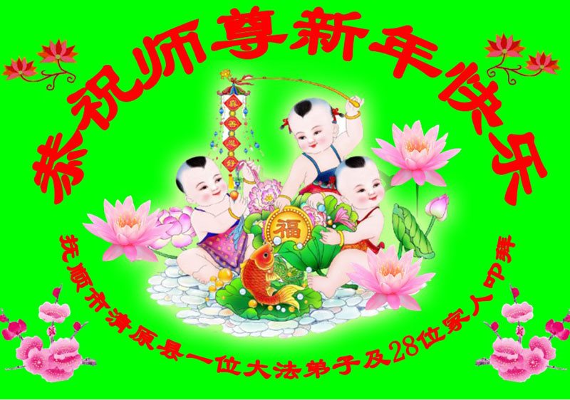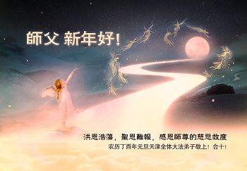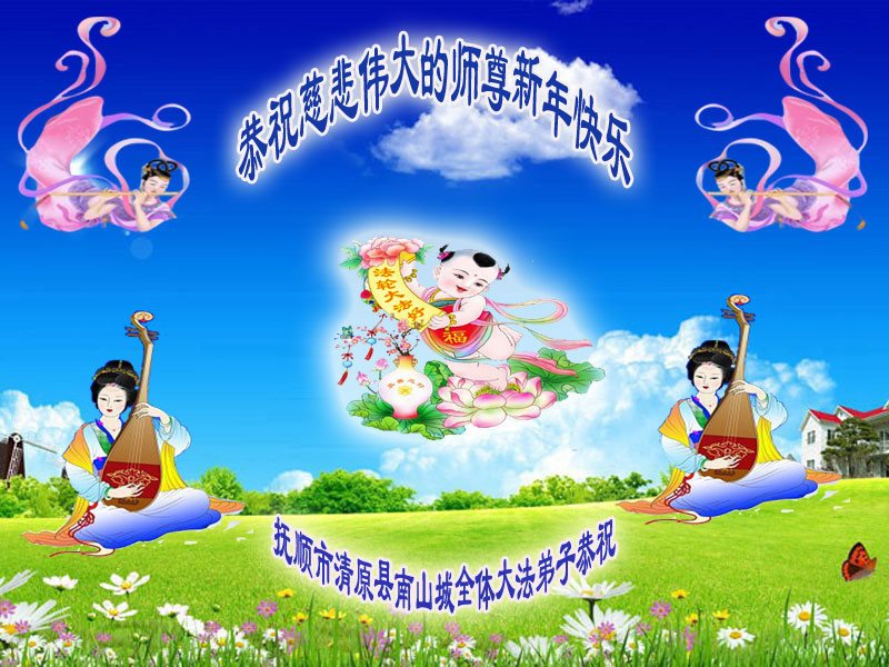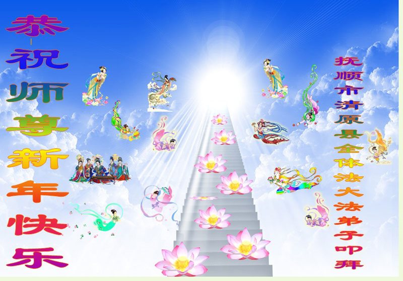 在新的一年到来之日,我们这些老年大法弟子及其家人向您慈悲伟大的师尊拜年!恭祝师父新年好!