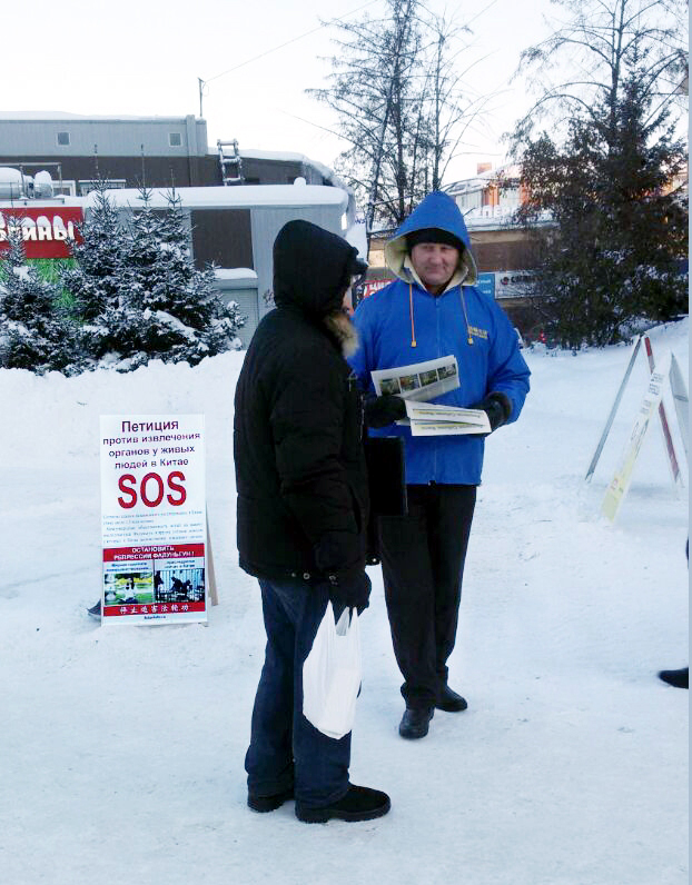 周末,在市中心的步行大街上,伊尔库茨克市的法轮功学员举办了征签反迫害活动。虽然天气寒冷,仍有不少行人在赶路的同时,驻足观看展板,接受真相资料,认真阅读。