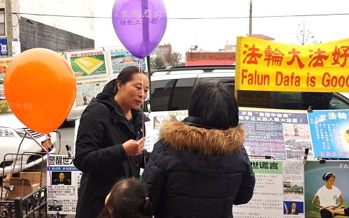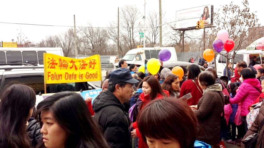 ![]() 图1-2:二零一六年二月二十一日,纽约的法轮功学员在布碌仑八大道为华人送福,同时帮助三退保平安。 |