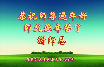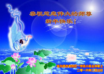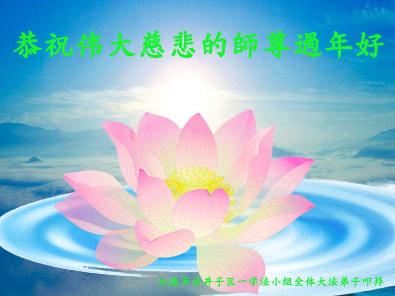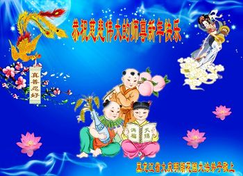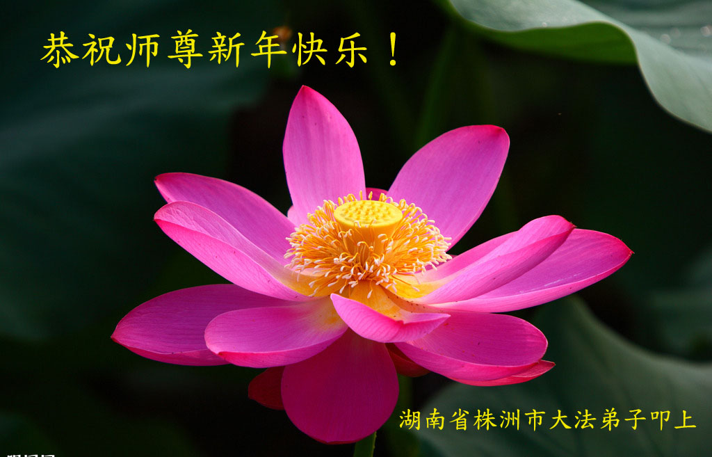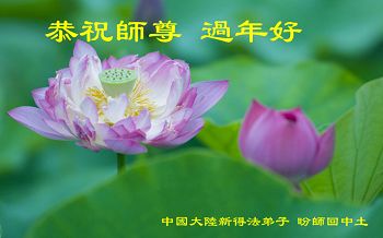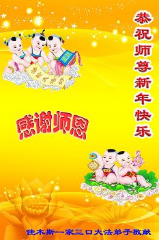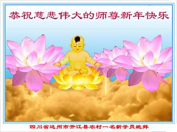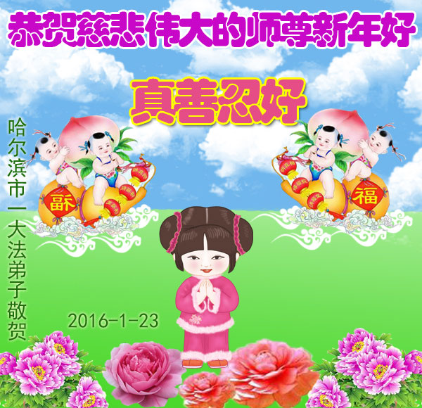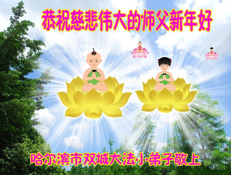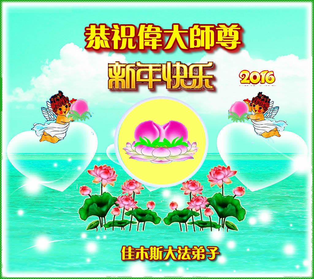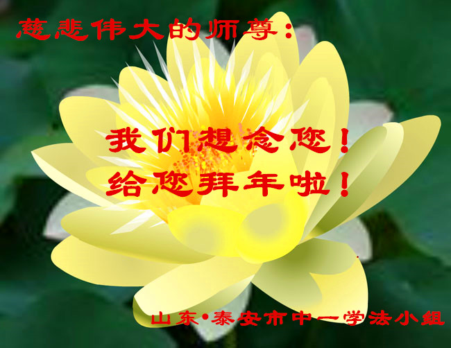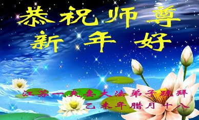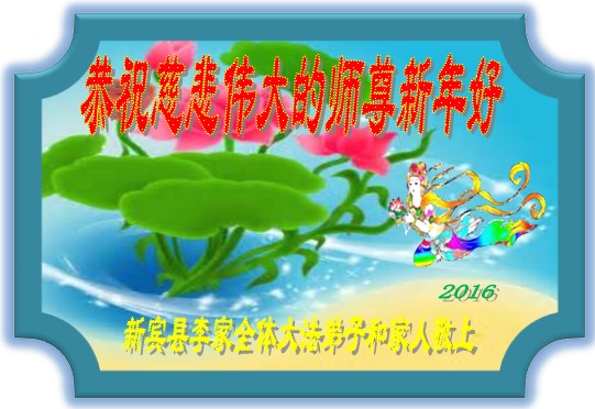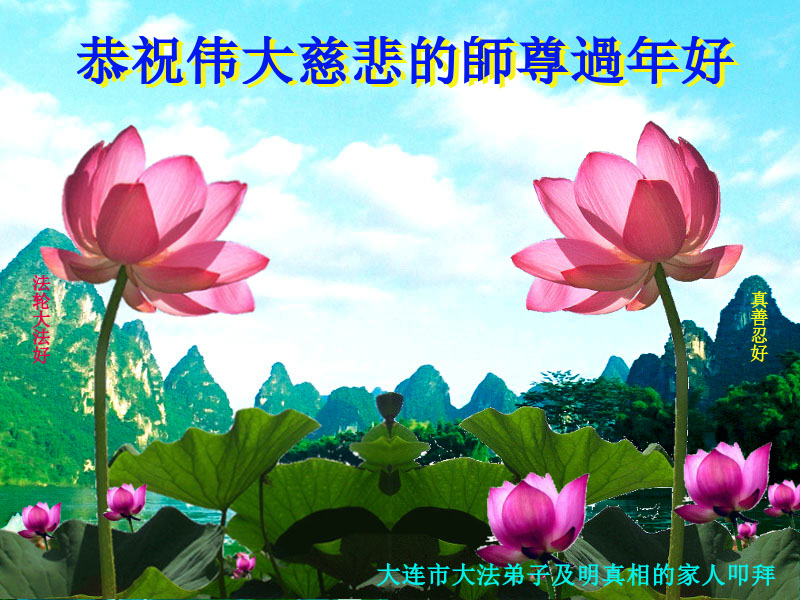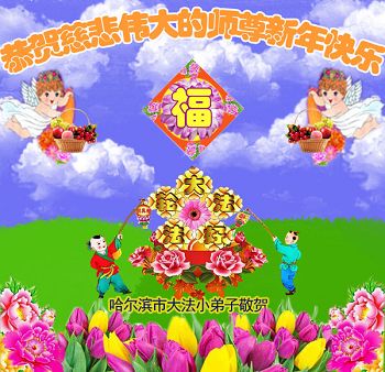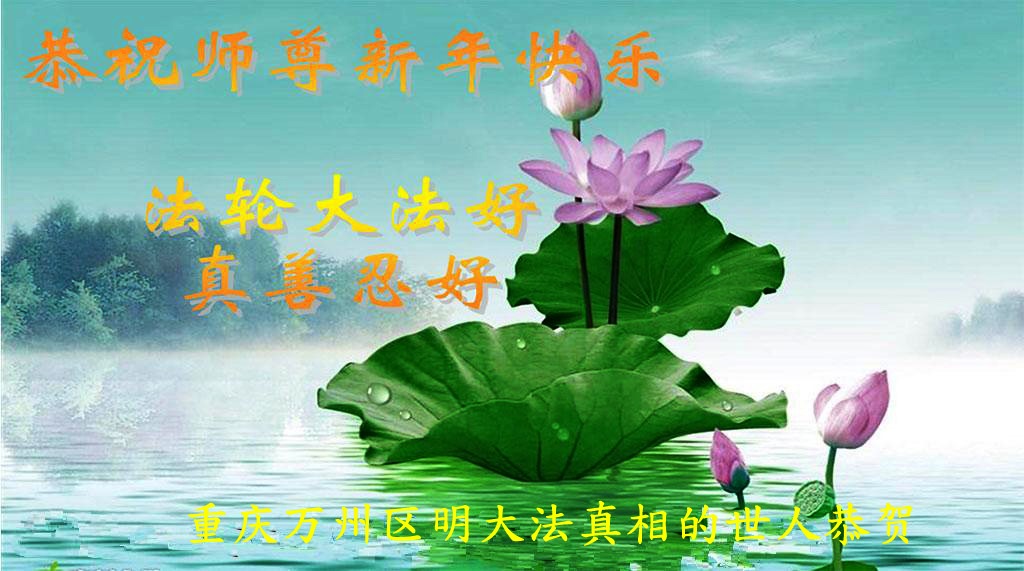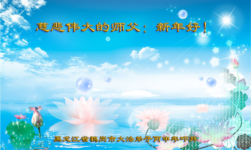 至尊无上的李大师新年好!穷尽人类的语言难以表达我们心中对李大师的无限感恩!法轮大法修炼者谨遵师命,按照真善忍的原则,遇事首先为他人着想的高贵品质,象一股清流涤荡着人类社会的一切邪恶!我们在此真心奉劝那些还被中共邪党蒙骗的世人,珍惜每一次法轮功弟子给你们的机会,明白法轮功真相,相信“法轮大法好”、“真、善、忍好”,给自己选择一个美好的未来!