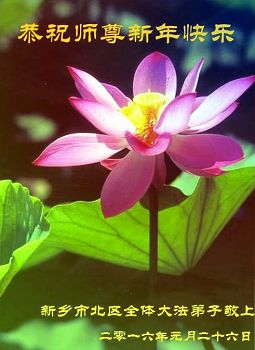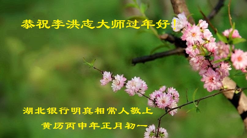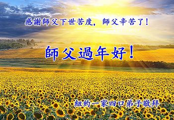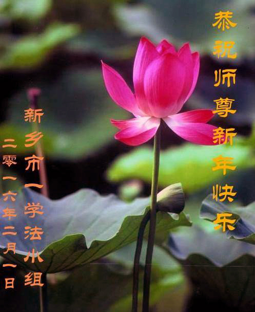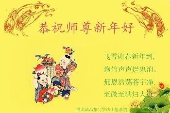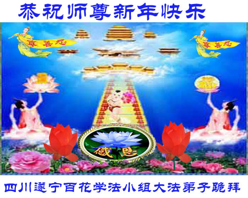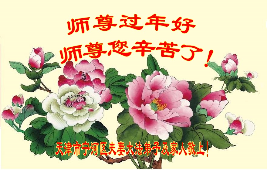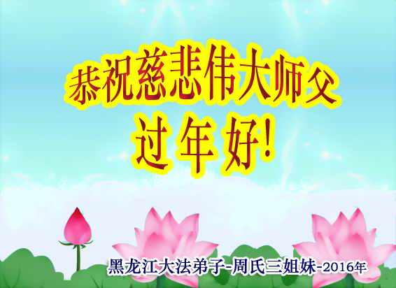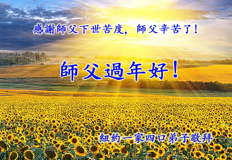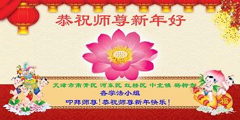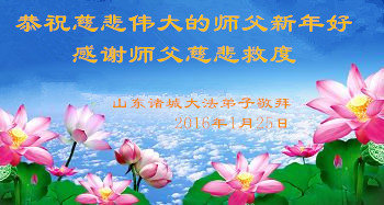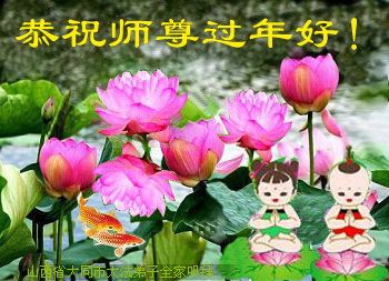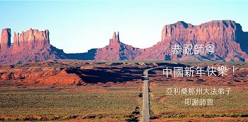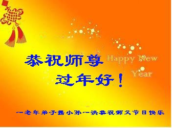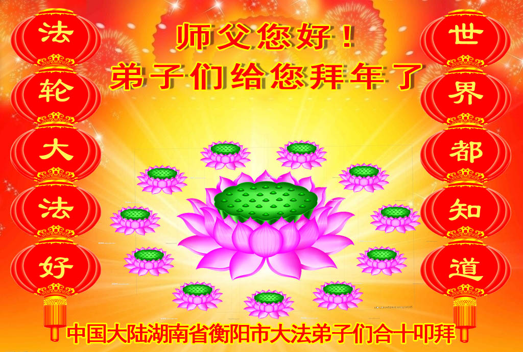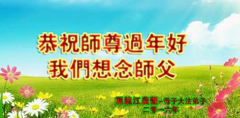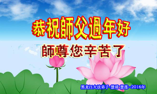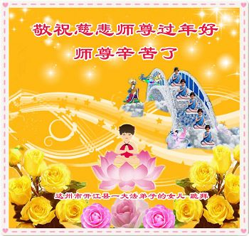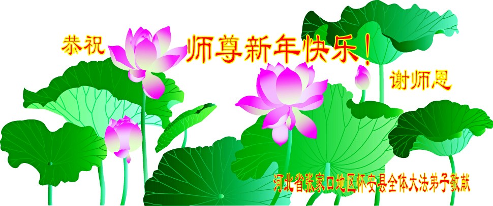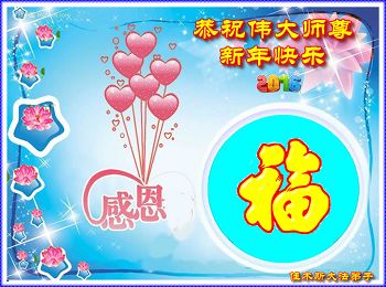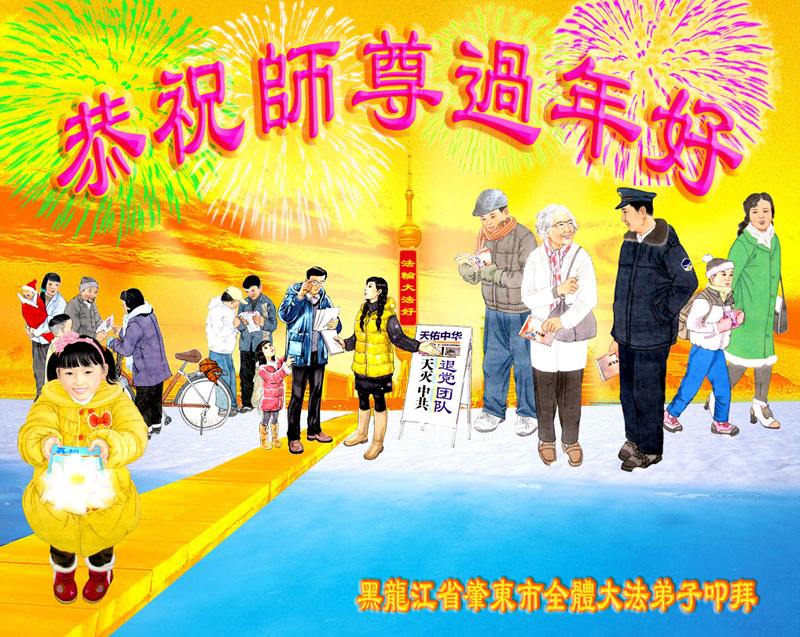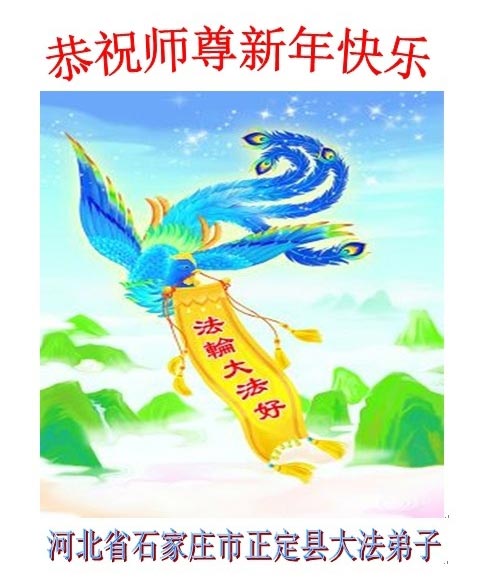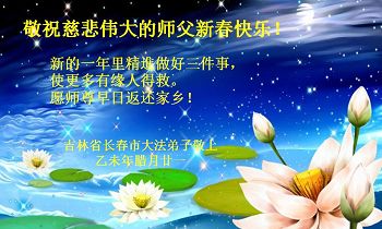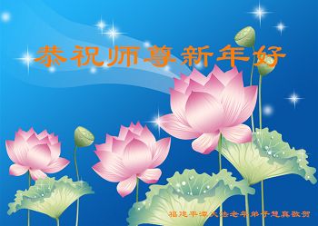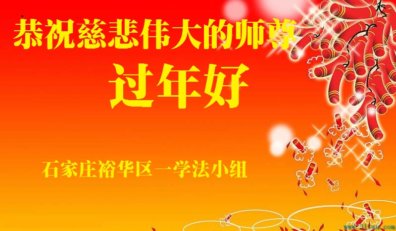 至尊无上的李大师新年好!穷尽人类的语言难以表达我们心中对李大师的无限感恩!法轮大法修炼者谨遵师命,按照真善忍的原则,遇事首先为他人着想的高贵品质,象一股清流涤荡着人类社会的一切邪恶!我们在此真心奉劝那些还被中共邪党蒙骗的世人,珍惜每一次法轮功弟子给你们的机会,明白法轮功真相,相信“法轮大法好”、“真、善、忍好”,给自己选择一个美好的未来!