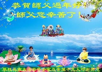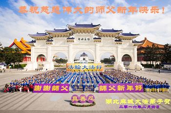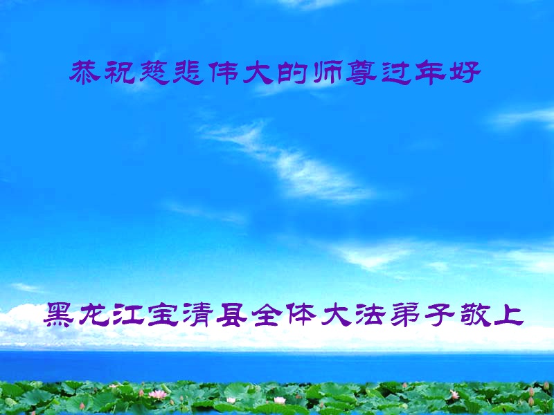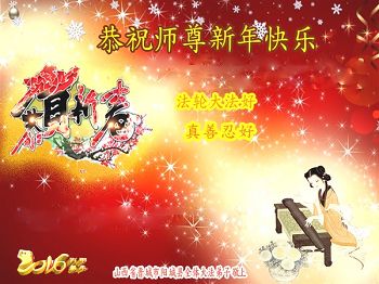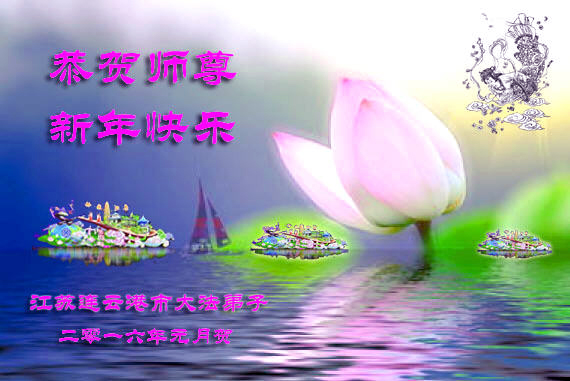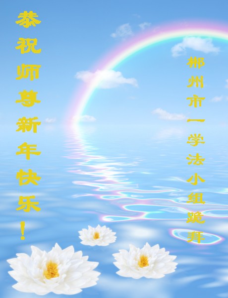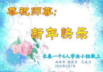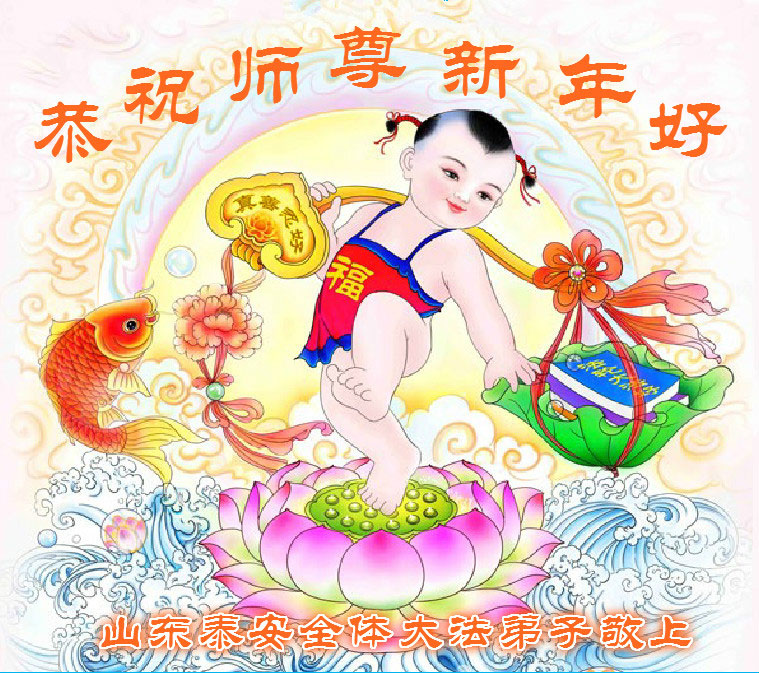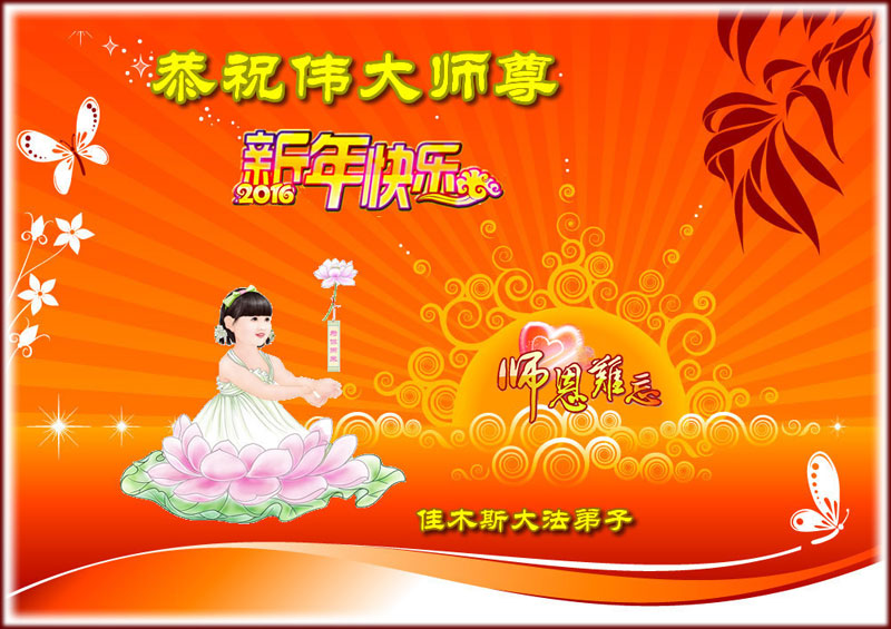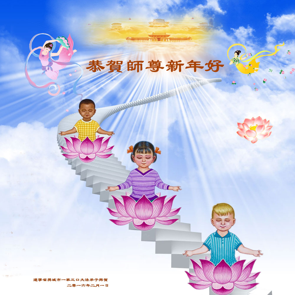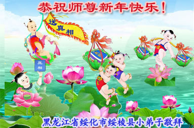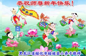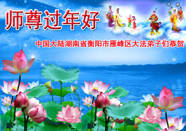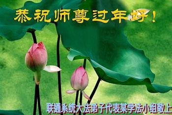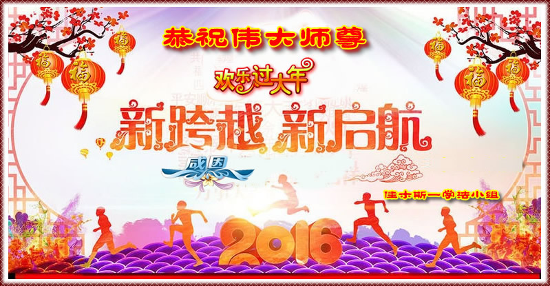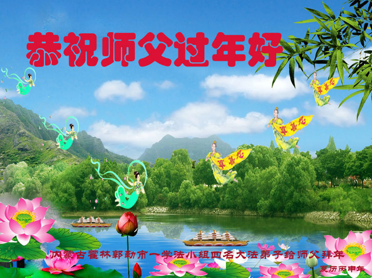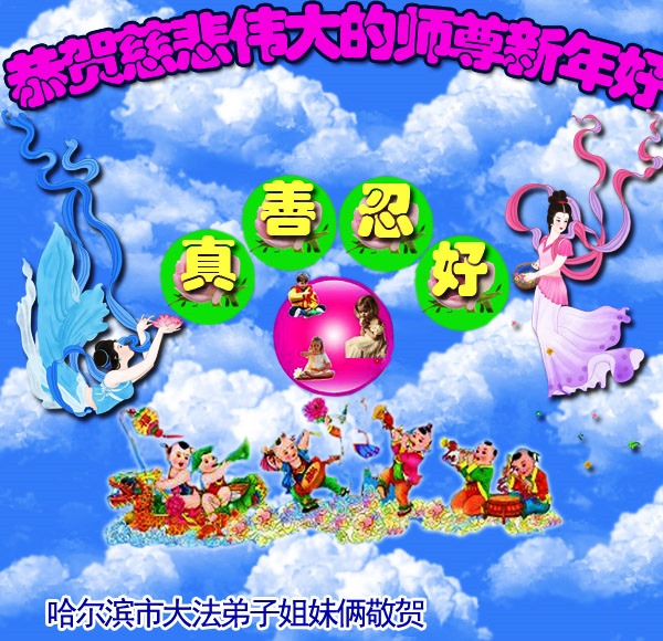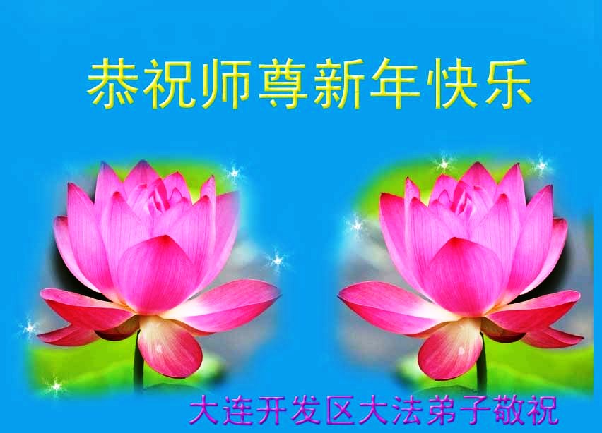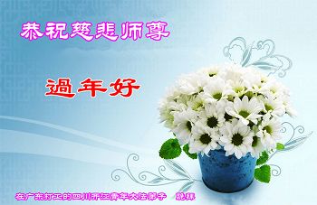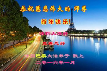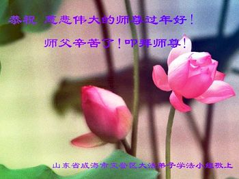 至尊无上的李大师新年好!穷尽人类的语言难以表达我们心中对李大师的无限感恩!法轮大法修炼者谨遵师命,按照真善忍的原则,遇事首先为他人着想的高贵品质,象一股清流涤荡着人类社会的一切邪恶!我们在此真心奉劝那些还被中共邪党蒙骗的世人,珍惜每一次法轮功弟子给你们的机会,明白法轮功真相,相信“法轮大法好”、“真、善、忍好”,给自己选择一个美好的未来!
