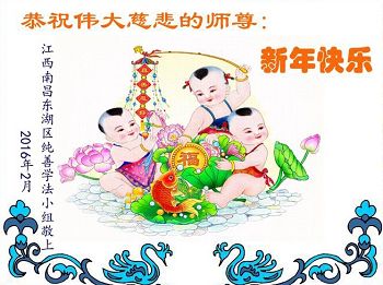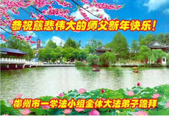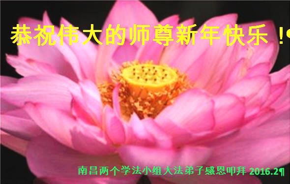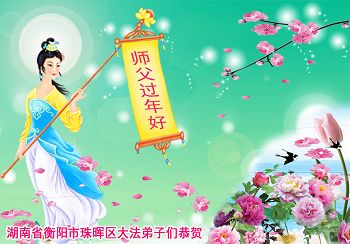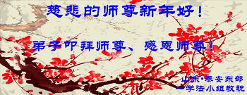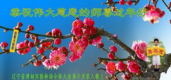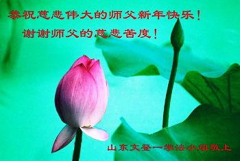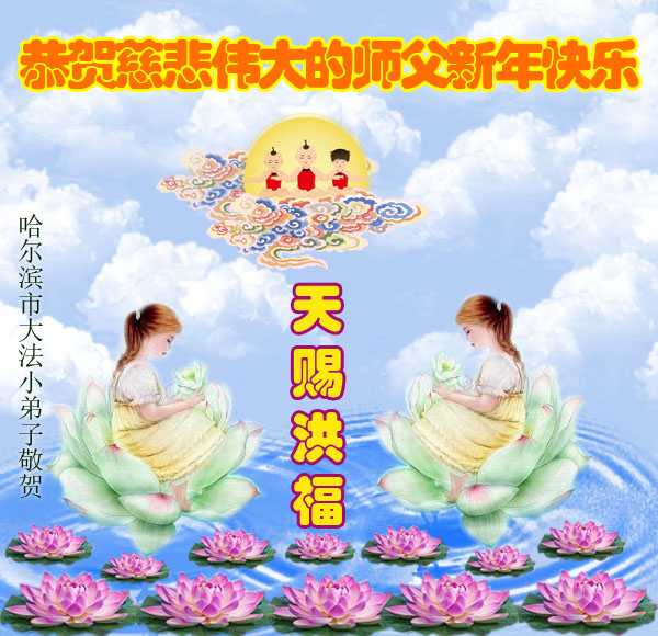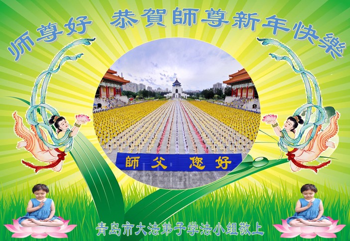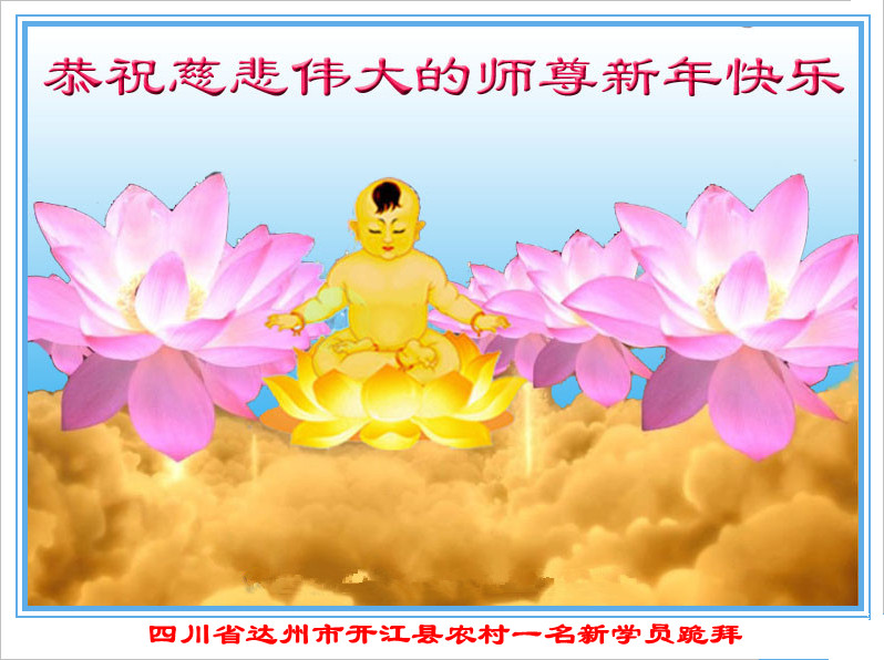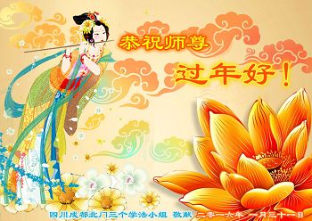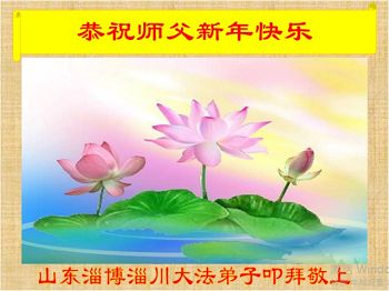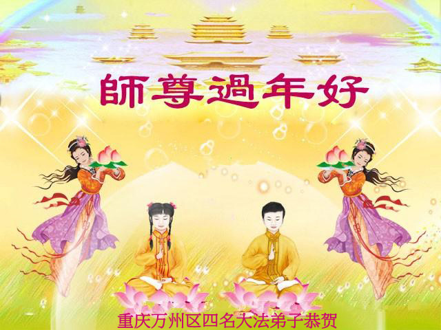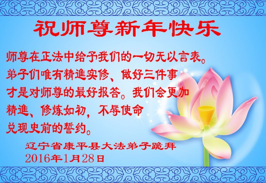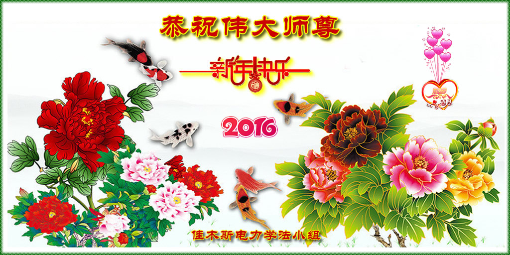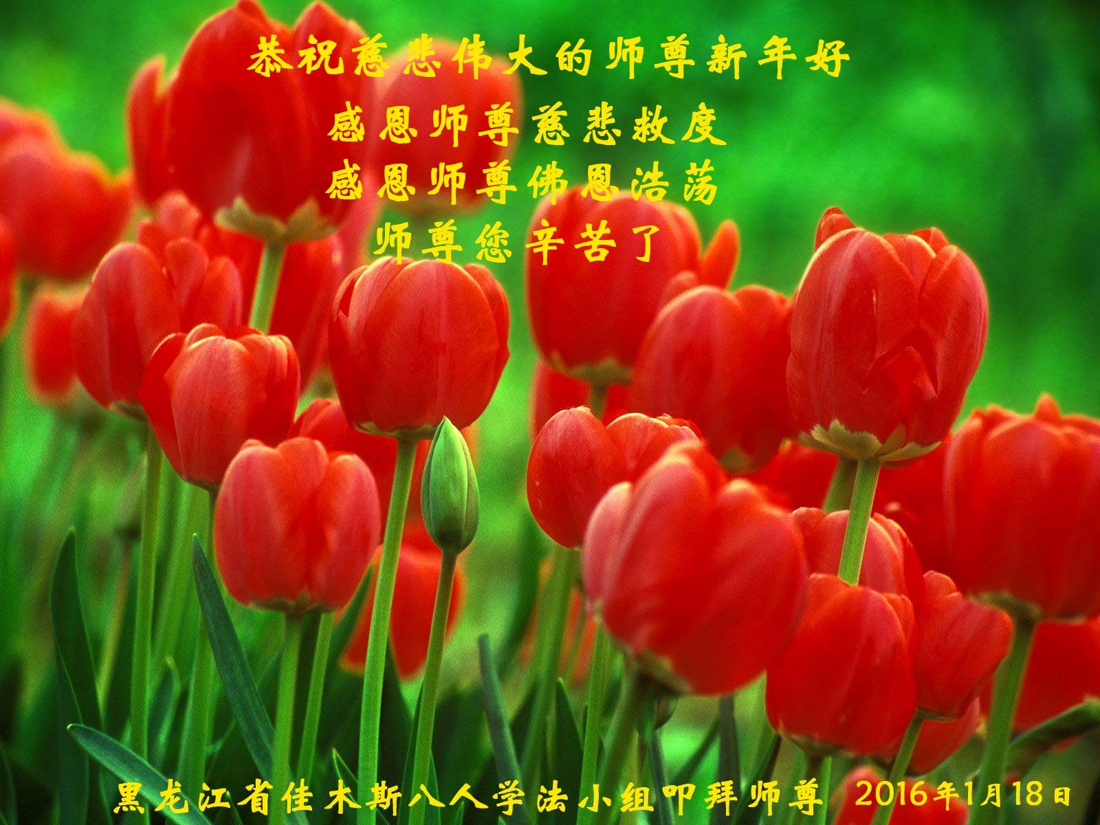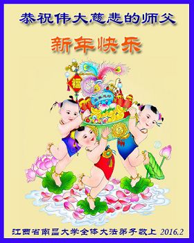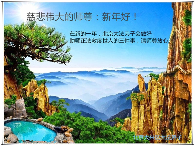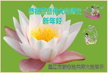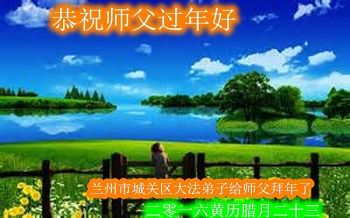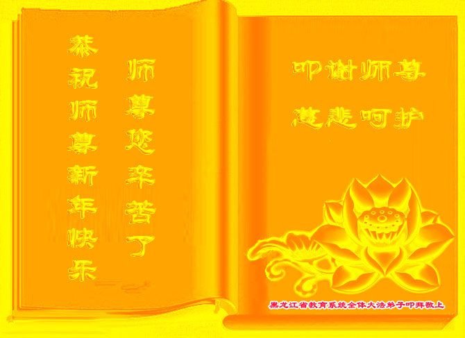 至尊无上的李大师新年好!穷尽人类的语言难以表达我们心中对李大师的无限感恩!法轮大法修炼者谨遵师命,按照真善忍的原则,遇事首先为他人着想的高贵品质,象一股清流涤荡着人类社会的一切邪恶!我们在此真心奉劝那些还被中共邪党蒙骗的世人,珍惜每一次法轮功弟子给你们的机会,明白法轮功真相,相信“法轮大法好”、“真、善、忍好”,给自己选择一个美好的未来!