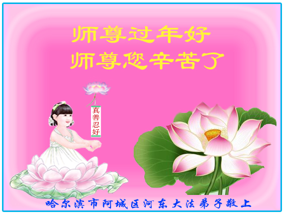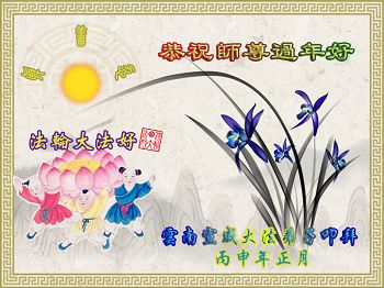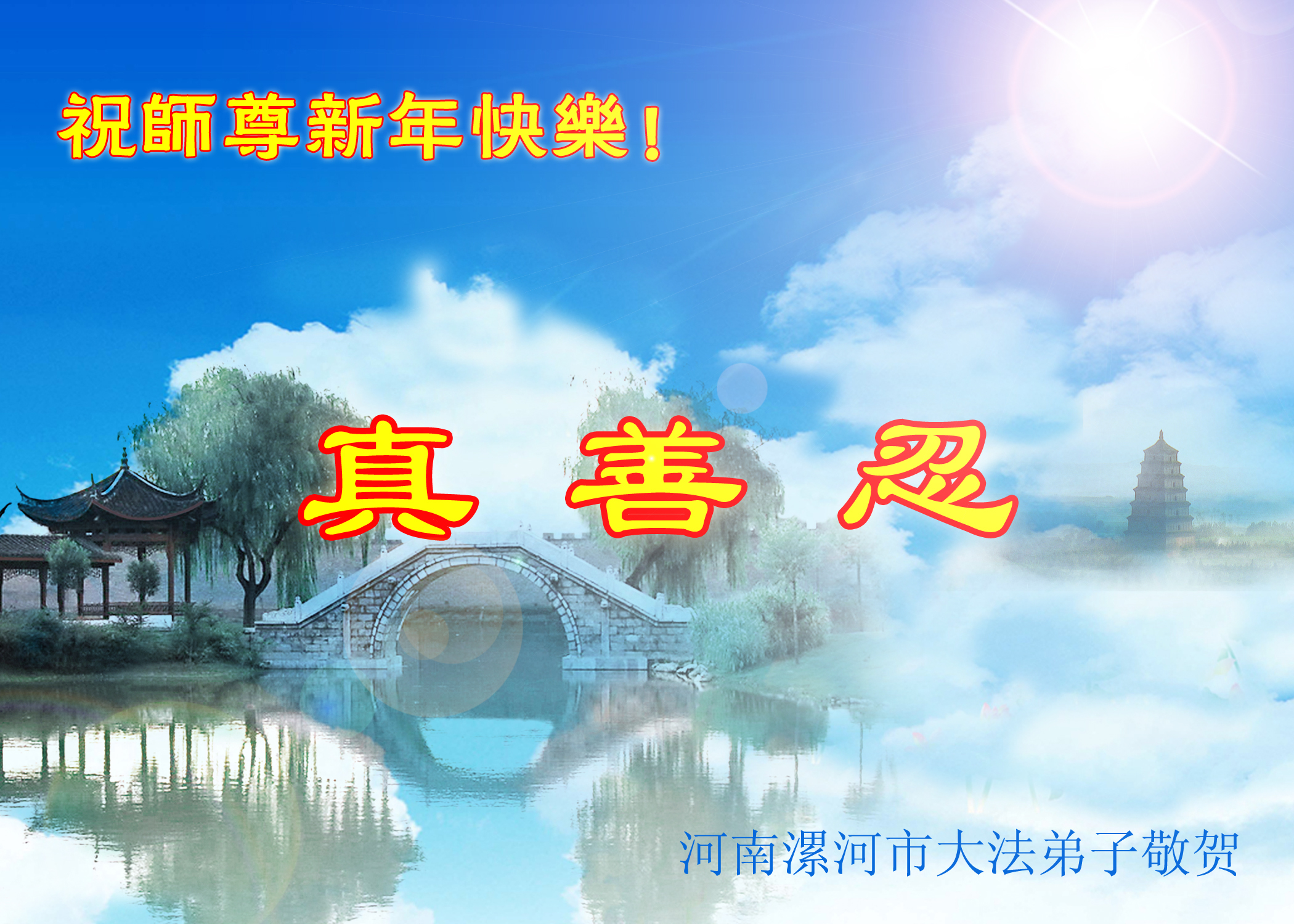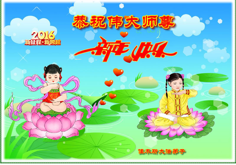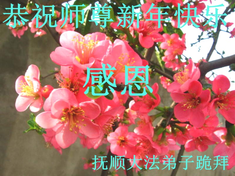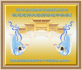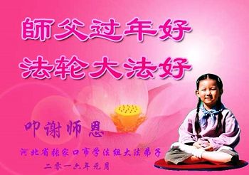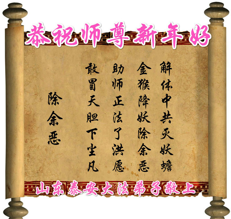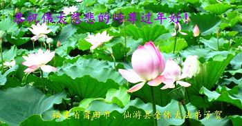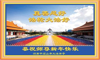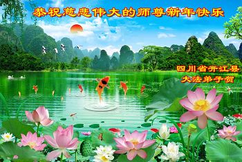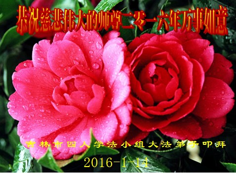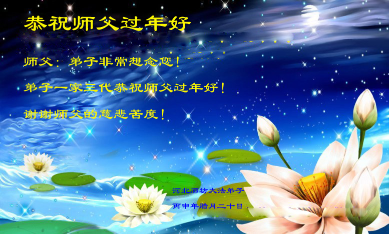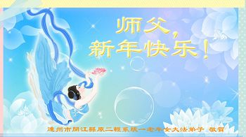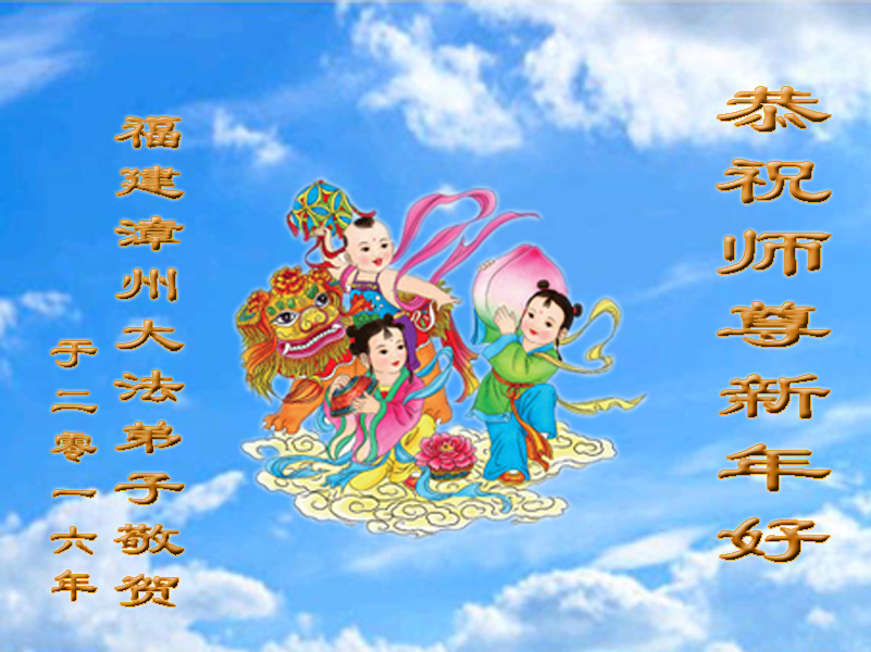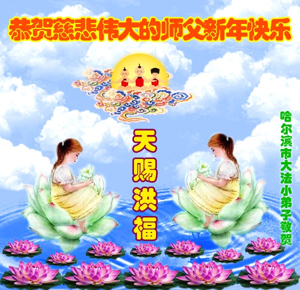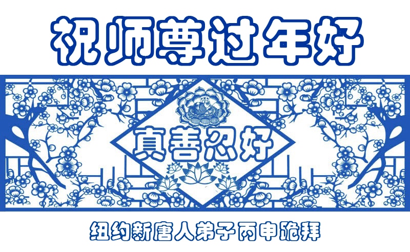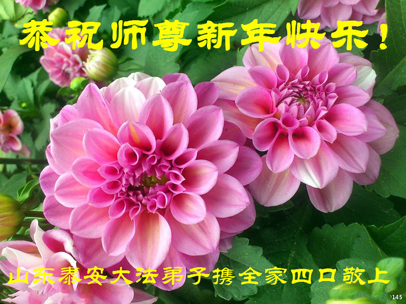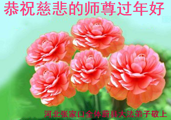 至尊无上的李大师新年好!穷尽人类的语言难以表达我们心中对李大师的无限感恩!法轮大法修炼者谨遵师命,按照真善忍的原则,遇事首先为他人着想的高贵品质,象一股清流涤荡着人类社会的一切邪恶!我们在此真心奉劝那些还被中共邪党蒙骗的世人,珍惜每一次法轮功弟子给你们的机会,明白法轮功真相,相信“法轮大法好”、“真、善、忍好”,给自己选择一个美好的未来!