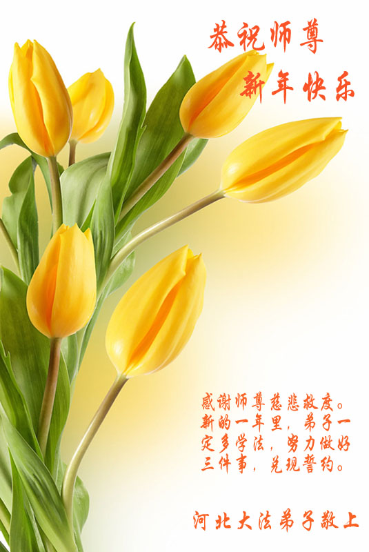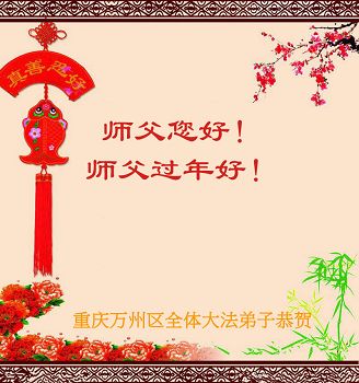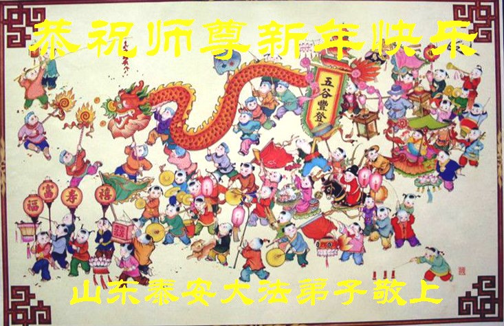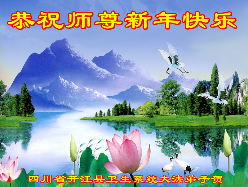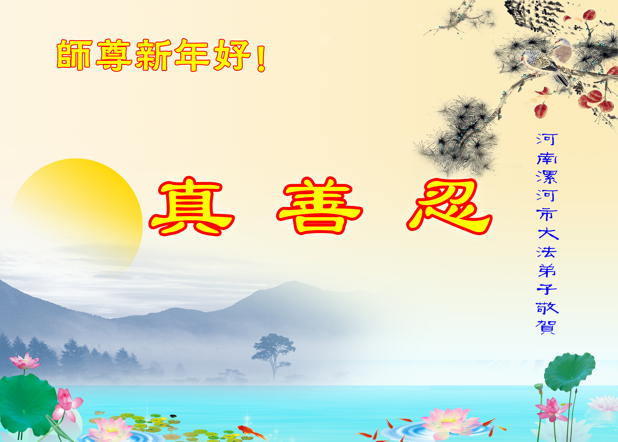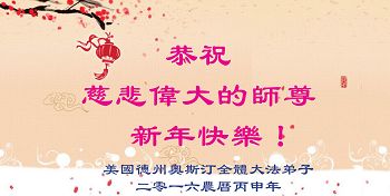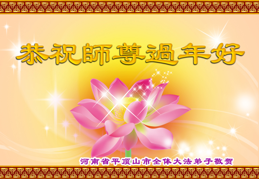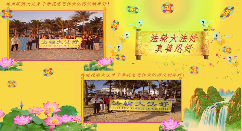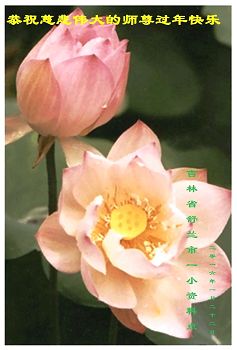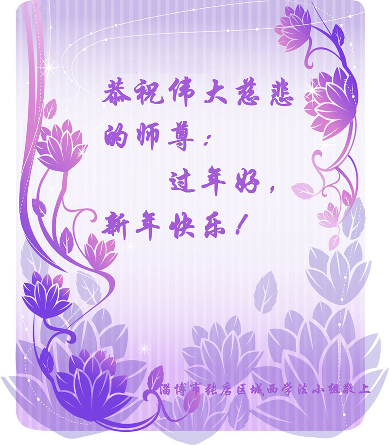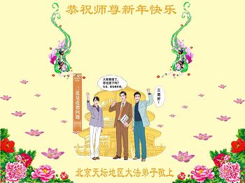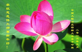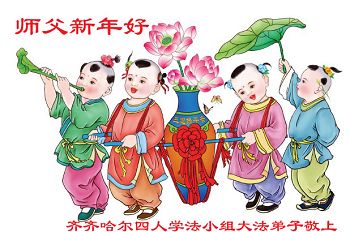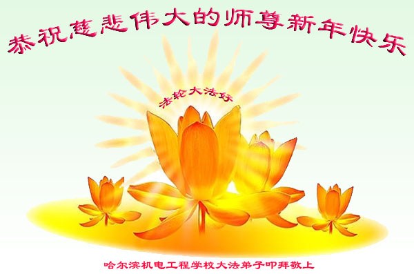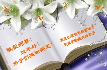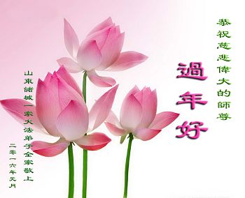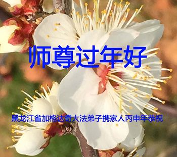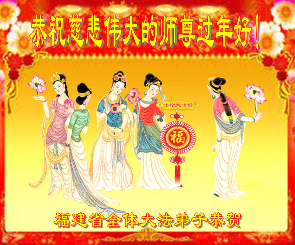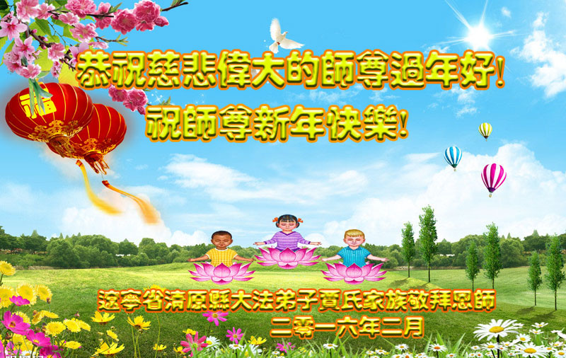 至尊无上的李大师新年好!穷尽人类的语言难以表达我们心中对李大师的无限感恩!法轮大法修炼者谨遵师命,按照真善忍的原则,遇事首先为他人着想的高贵品质,象一股清流涤荡着人类社会的一切邪恶!我们在此真心奉劝那些还被中共邪党蒙骗的世人,珍惜每一次法轮功弟子给你们的机会,明白法轮功真相,相信“法轮大法好”、“真、善、忍好”,给自己选择一个美好的未来!