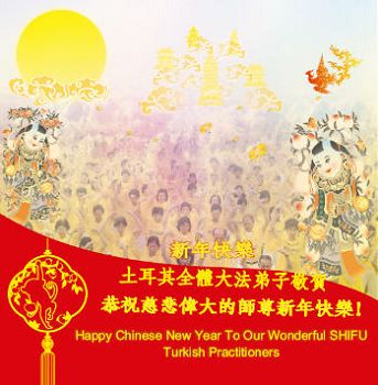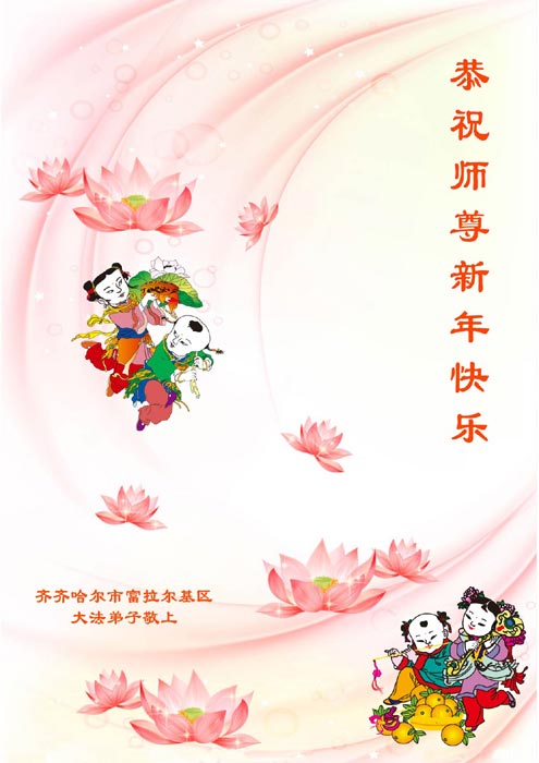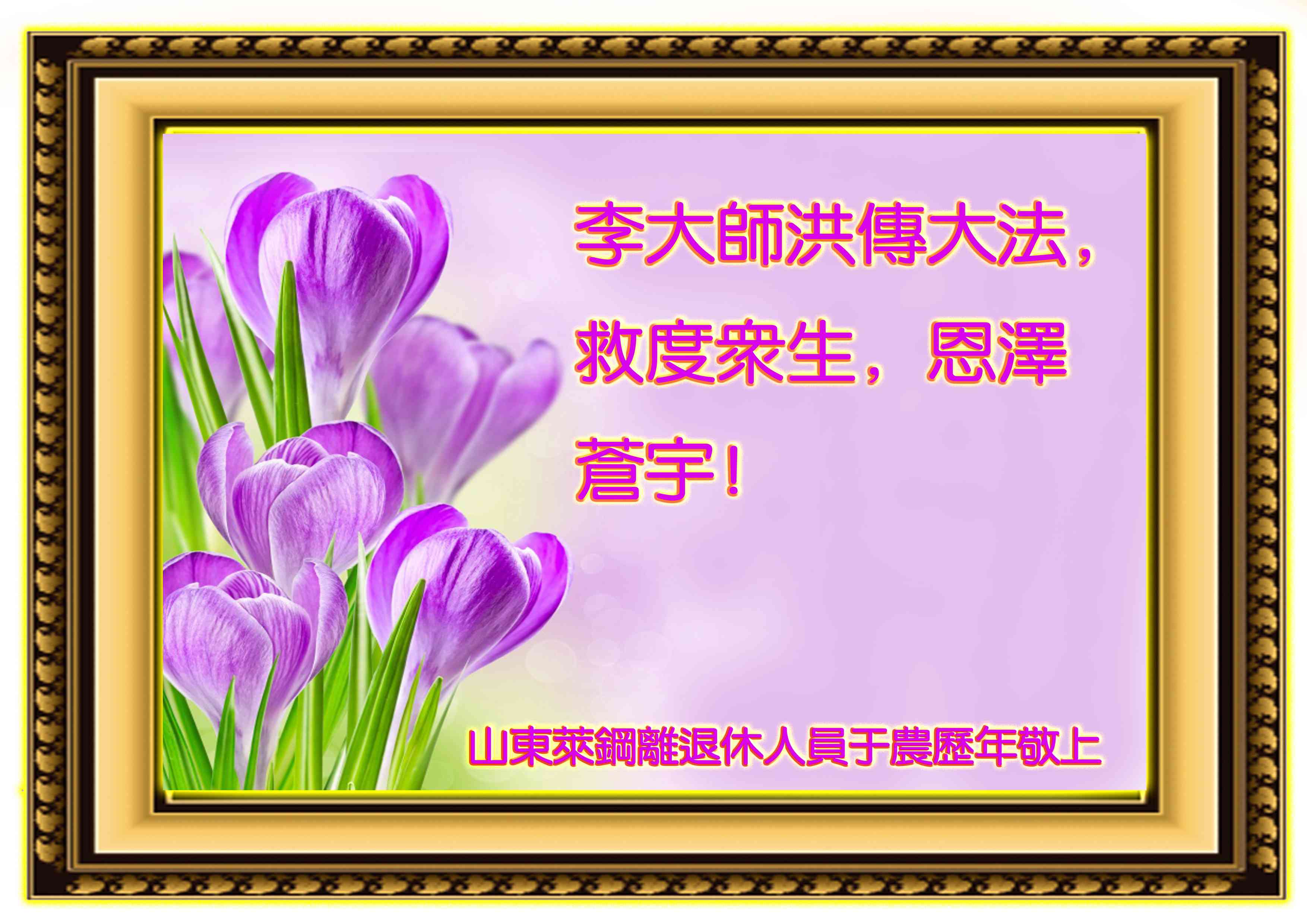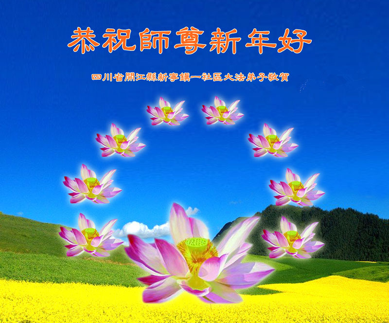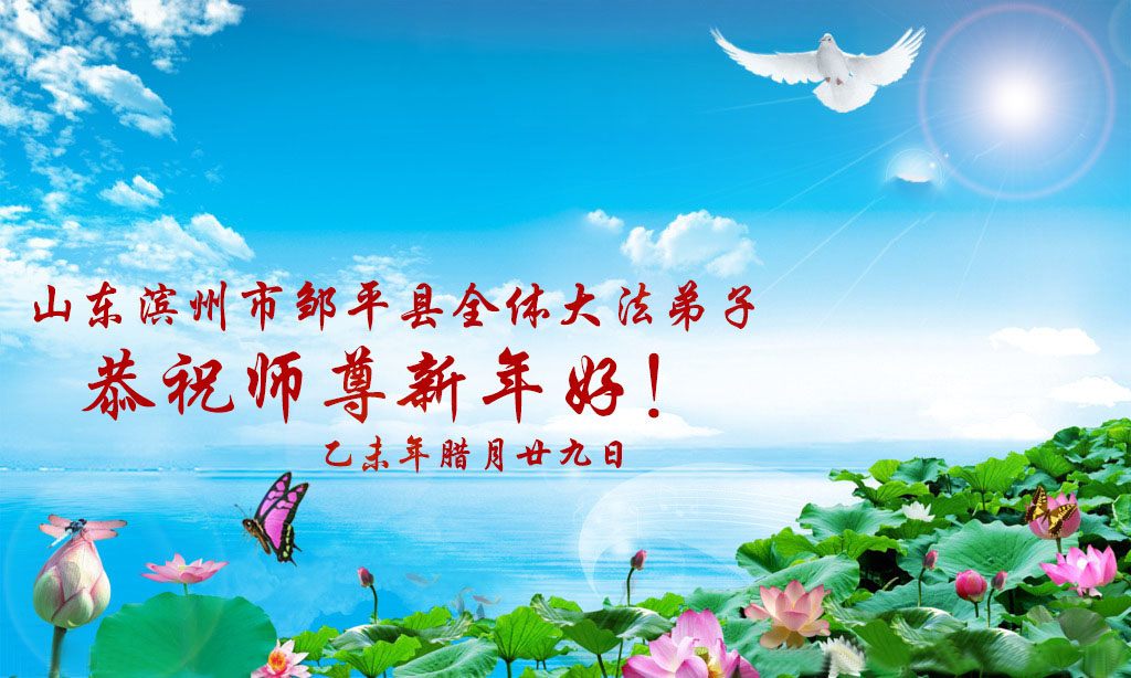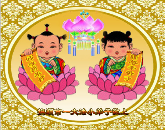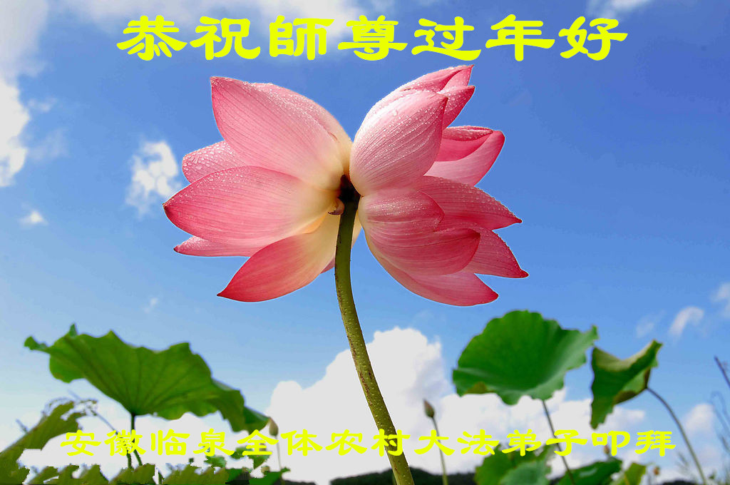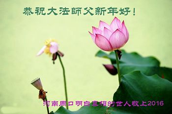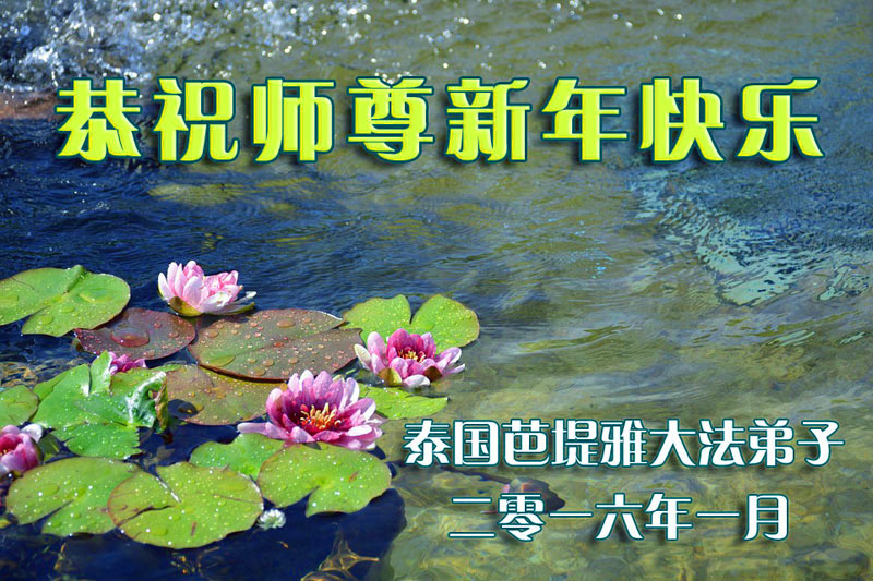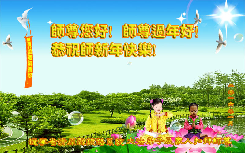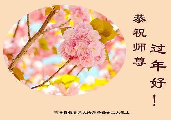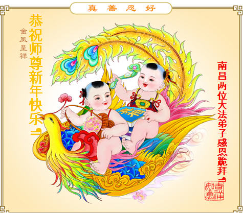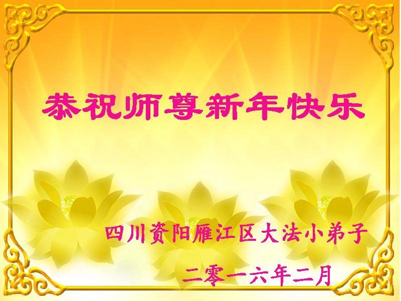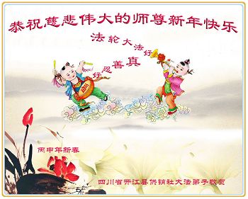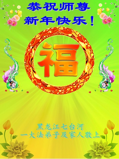 至尊无上的李大师新年好!穷尽人类的语言难以表达我们心中对李大师的无限感恩!法轮大法修炼者谨遵师命,按照真善忍的原则,遇事首先为他人着想的高贵品质,象一股清流涤荡着人类社会的一切邪恶!我们在此真心奉劝那些还被中共邪党蒙骗的世人,珍惜每一次法轮功弟子给你们的机会,明白法轮功真相,相信“法轮大法好”、“真、善、忍好”,给自己选择一个美好的未来!