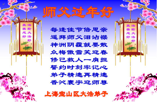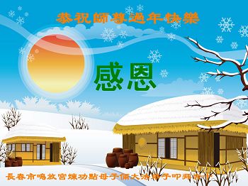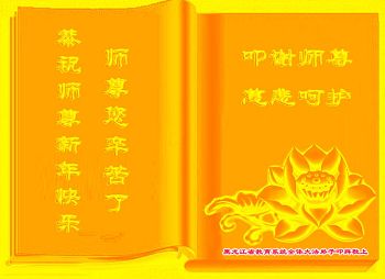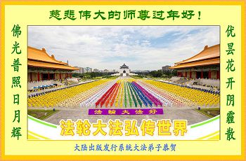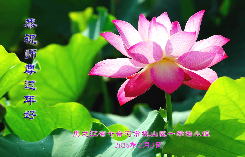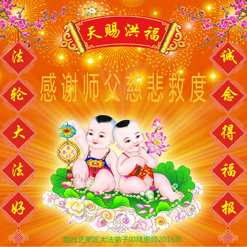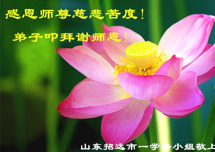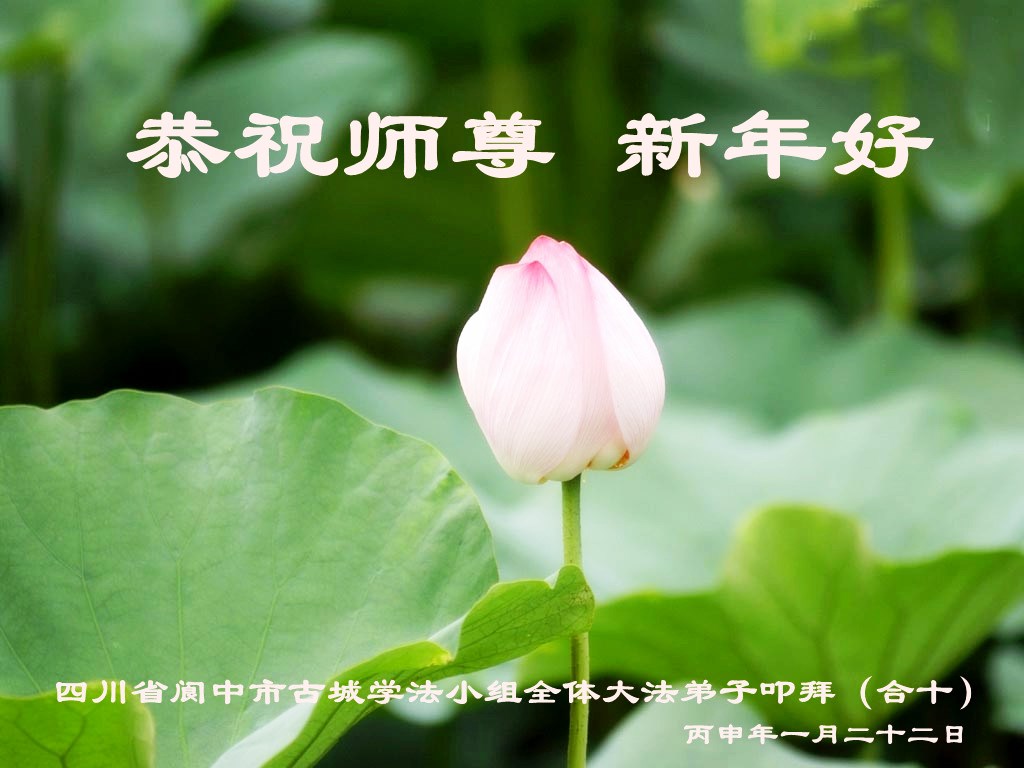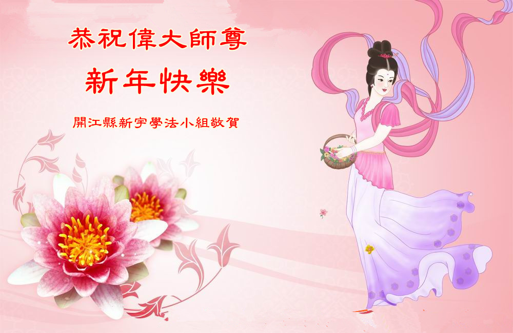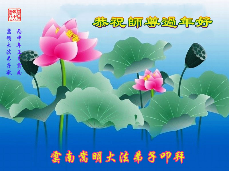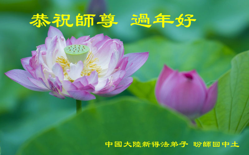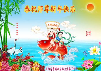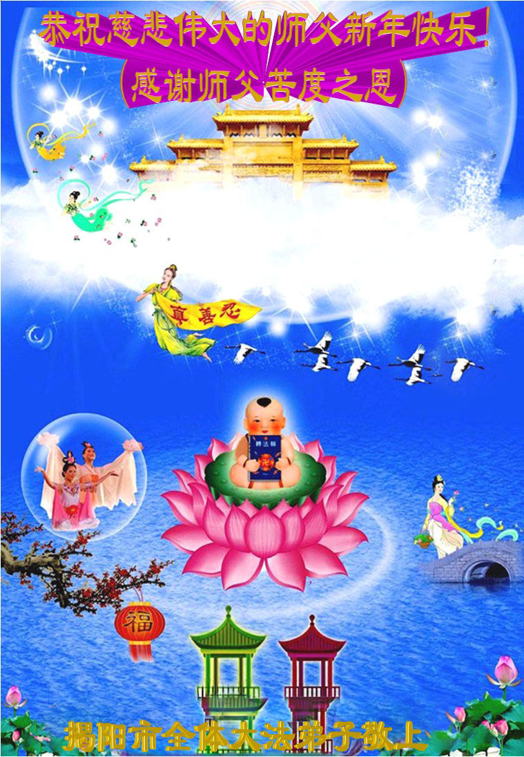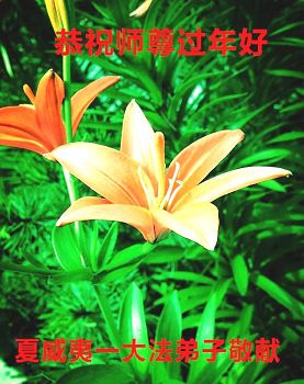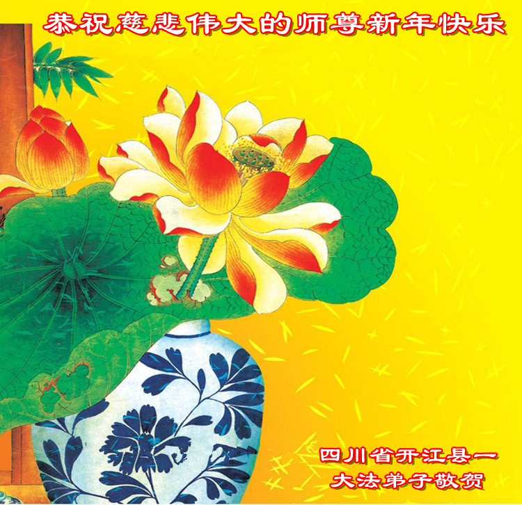 至尊无上的李大师新年好!穷尽人类的语言难以表达我们心中对李大师的无限感恩!法轮大法修炼者谨遵师命,按照真善忍的原则,遇事首先为他人着想的高贵品质,象一股清流涤荡着人类社会的一切邪恶!我们在此真心奉劝那些还被中共邪党蒙骗的世人,珍惜每一次法轮功弟子给你们的机会,明白法轮功真相,相信“法轮大法好”、“真、善、忍好”,给自己选择一个美好的未来!