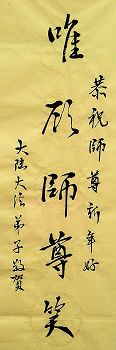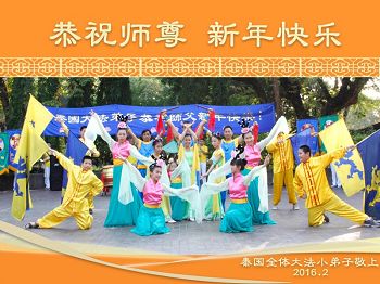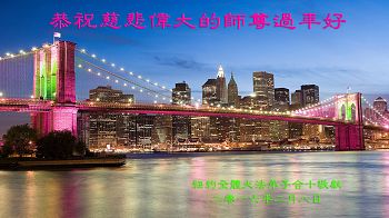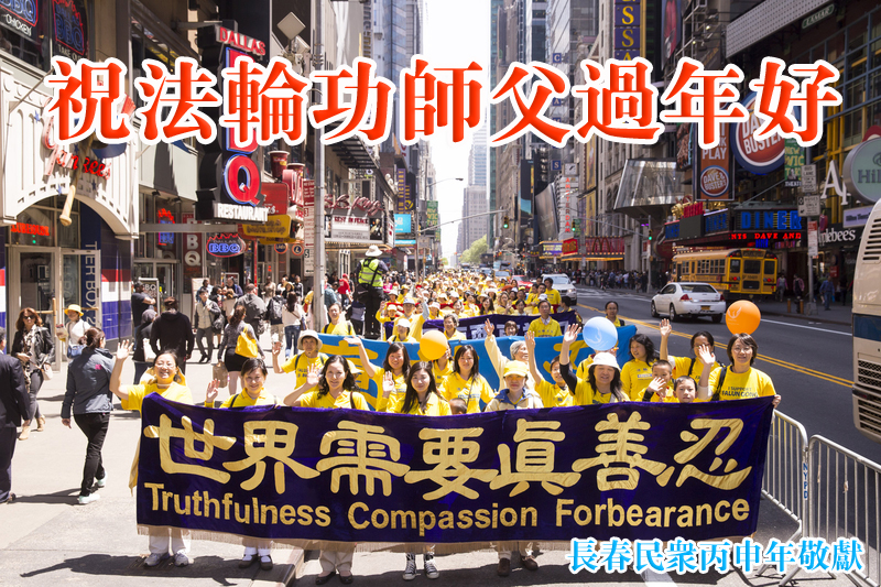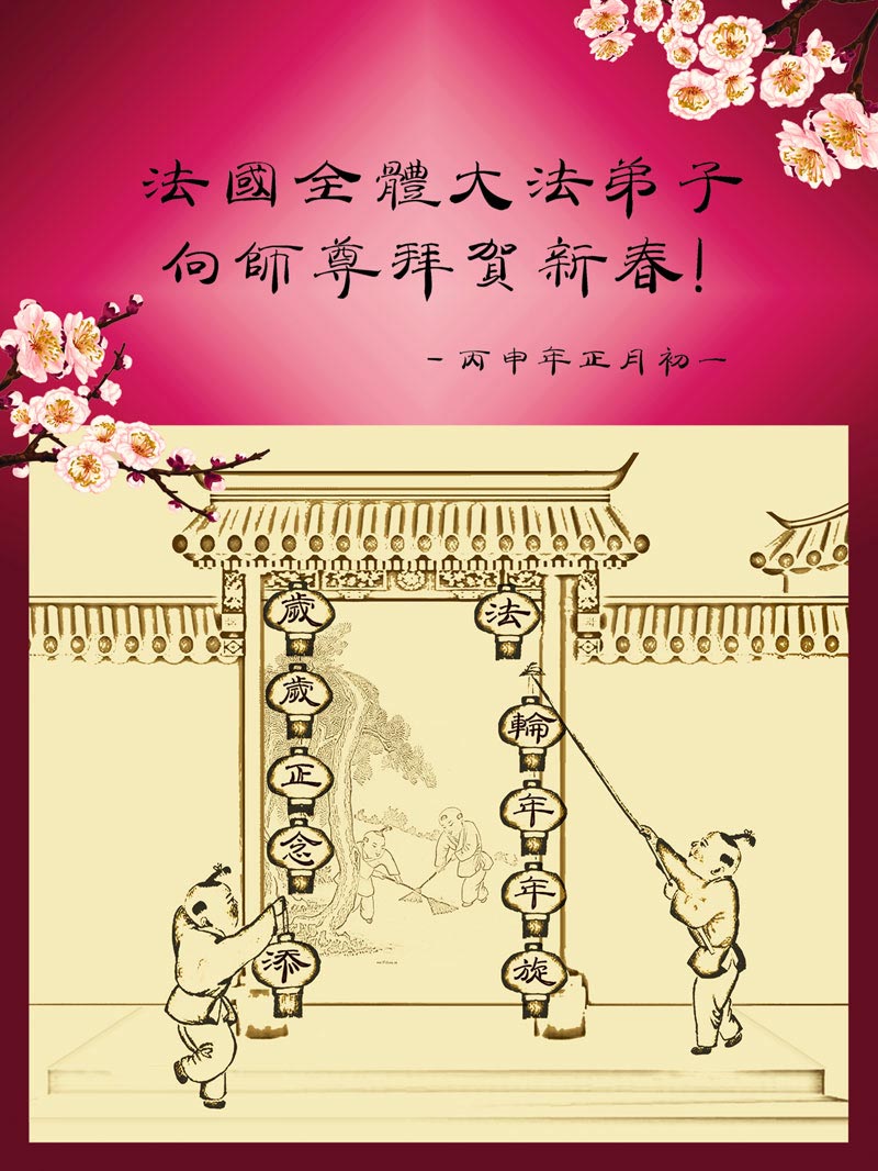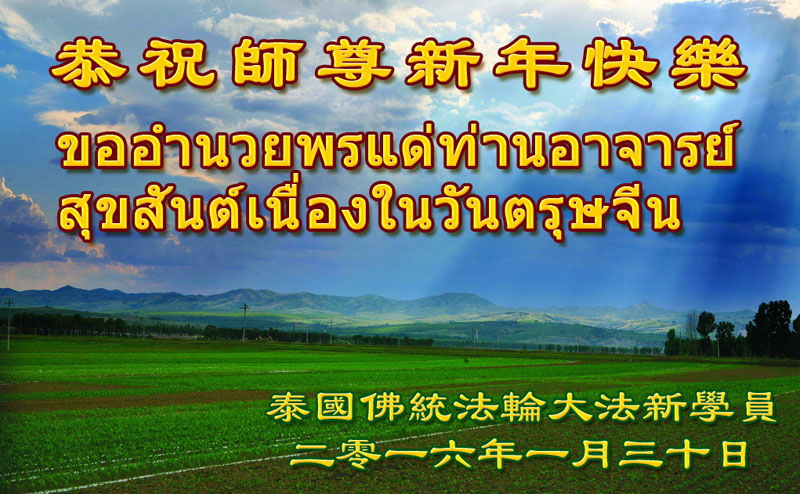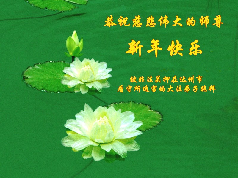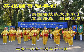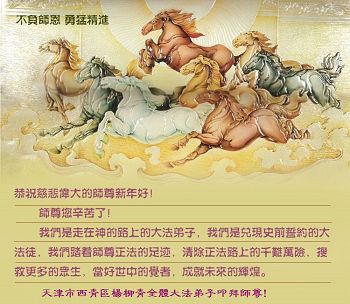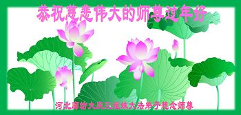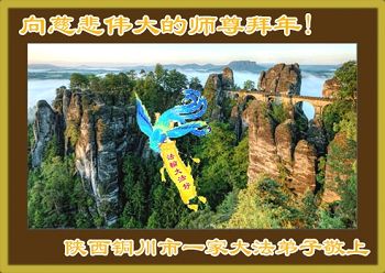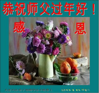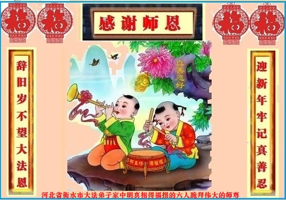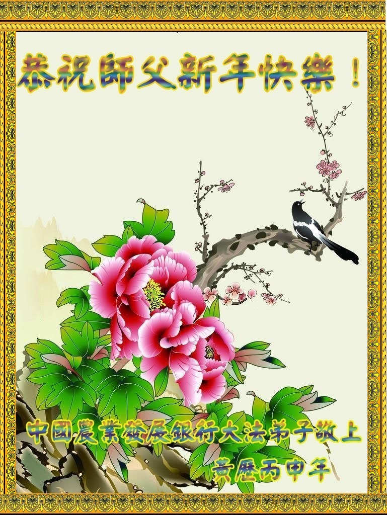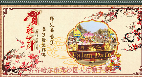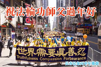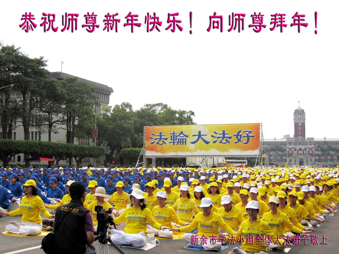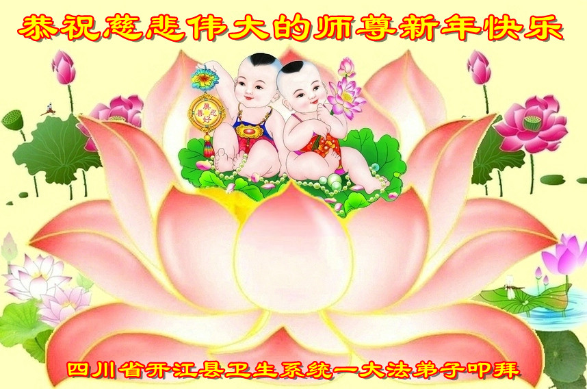 至尊无上的李大师新年好!穷尽人类的语言难以表达我们心中对李大师的无限感恩!法轮大法修炼者谨遵师命,按照真善忍的原则,遇事首先为他人着想的高贵品质,象一股清流涤荡着人类社会的一切邪恶!我们在此真心奉劝那些还被中共邪党蒙骗的世人,珍惜每一次法轮功弟子给你们的机会,明白法轮功真相,相信“法轮大法好”、“真、善、忍好”,给自己选择一个美好的未来!