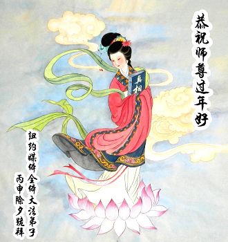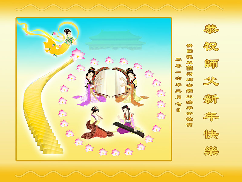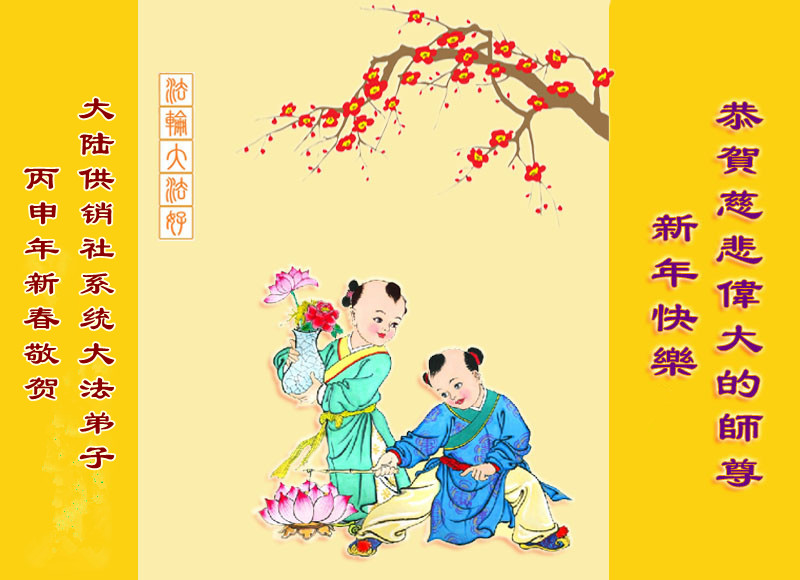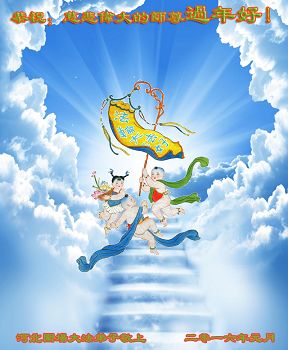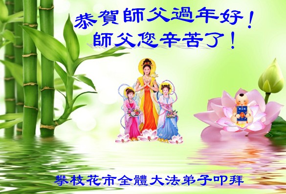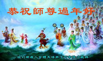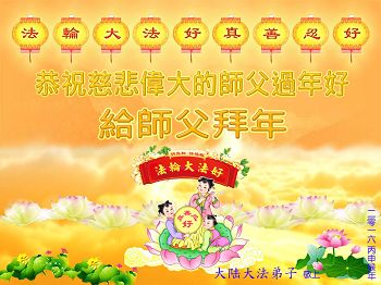 委托同事向大法师父表达敬意,并恭祝大法师父新年好!