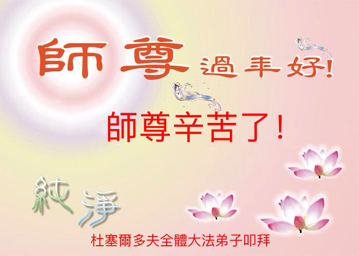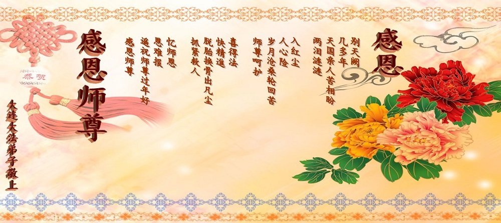 在这普天同庆的日子里,大法弟子暨家属向慈悲伟大的师尊表达心中最诚挚的问候和感恩!师父辛苦了!您为弟子及众生承受太多太多,弟子们深知这延续来的时间是您给大法弟子修炼与救度众生的,众生感受着主佛的慈悲,我们一定做好三件事,形成整体,广传真相,多救众生,让师父欣慰!