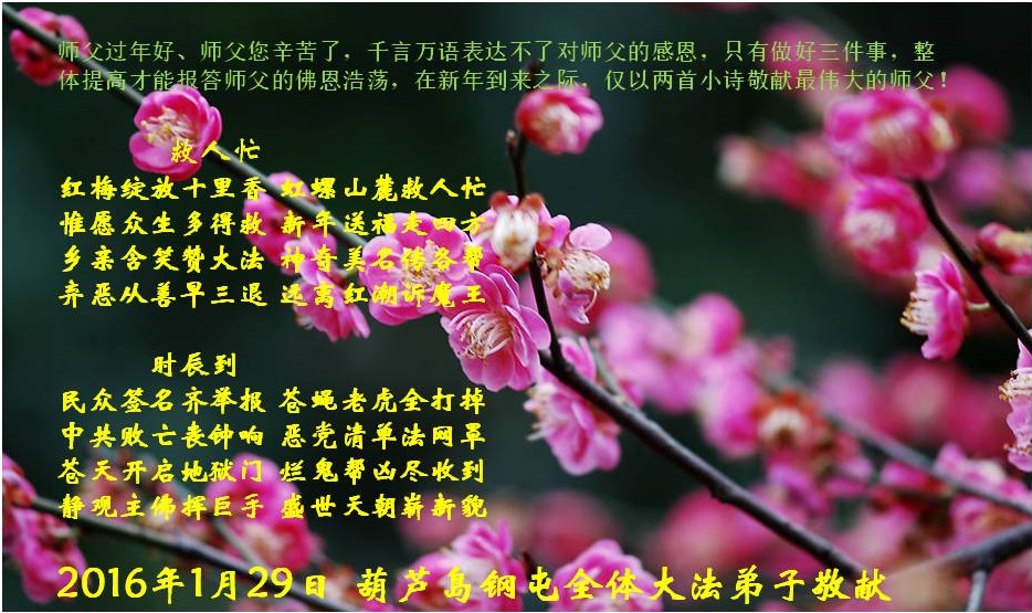 <英文版: http://en.minghui.org/html/articles/2016/2/8/155254.html>大陆军队大法弟子恭祝师尊过年好(20条)