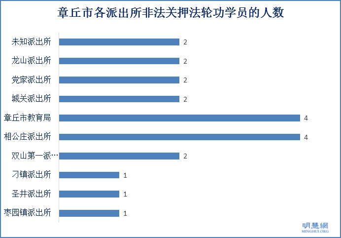 ![]() 图5:章丘市各派出所非法关押法轮功学员的人数 |