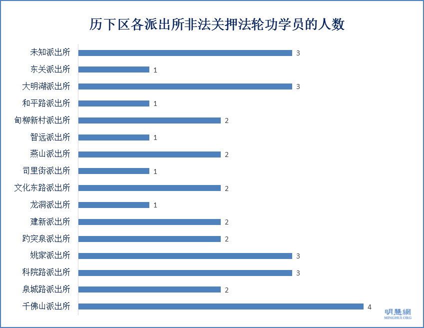 ![]() 图7:历下区各派出所非法关押法轮功学员的人数 |