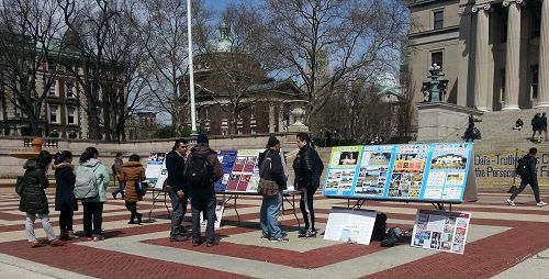 有个在国外出生的学生,来看展版了解真相,他告诉学员自己的爸爸妈妈都是中国人。学员跟他讲真相:“中国是我们的根啊,你看现在中国发生的事情,法轮功被迫害,法轮功学员被活摘器官。法轮功在全世界一百多个国家都有修炼者,只有中国(共)镇压。法轮大法的主要著作《转法轮》一书,已经被翻译成四十种语言在全世界公开发行。在国内外,各个阶层都有修炼法轮功的。你明白了以后,希望你回家告诉爸爸妈妈让他们也了解真相,三退保平安,或者我帮你爸爸妈妈起个化名给他们退了,但是,他们得同意,不同意是不管用的。”学生赶紧回答:“同意!他们一定同意!”学员就给起个化名帮他们退了,同时嘱咐这个学生一定要回去告诉父母真相,学生高兴地说: “好! 我一定告诉他们。”