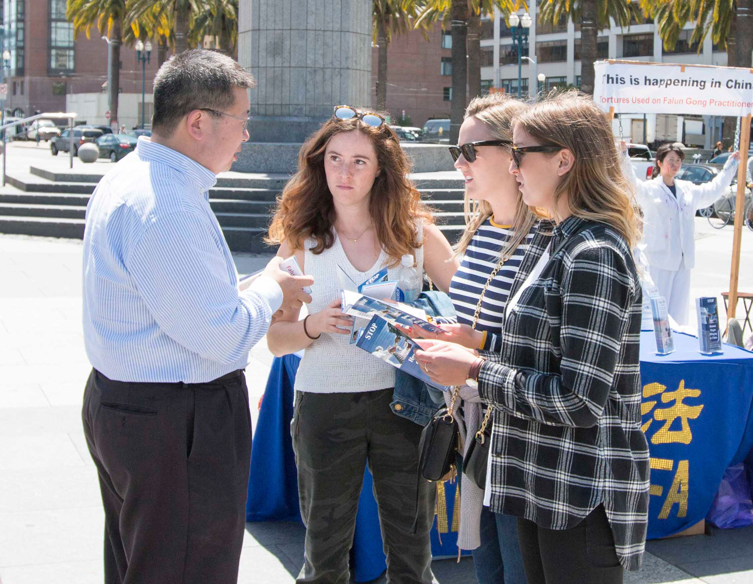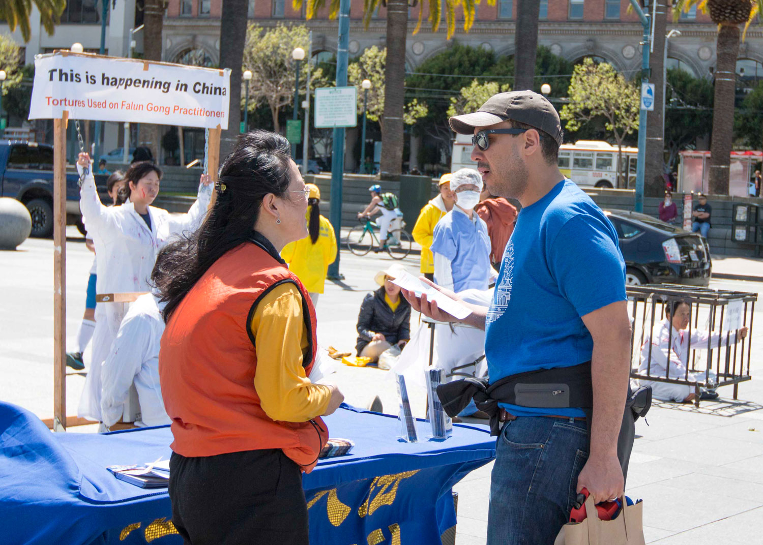 旧金山居民Michelle表示,法轮功学员利用真人演示中共的酷刑效果非常好。她说:“法轮功的真善忍原则太伟大了。”当她了解到修炼真善忍的法轮功学员在中国受到酷刑折磨时,她说:“太恐怖了,你们的展示效果非常好,我支持你们。谢谢你们告诉我们真相。”
