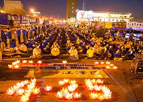 加拿大首都渥太华的法轮功学员在驻加中使馆前纪念“四二五和平上访”十七周年,并点燃烛光为中国大陆被迫害致死的法轮功学员守夜。