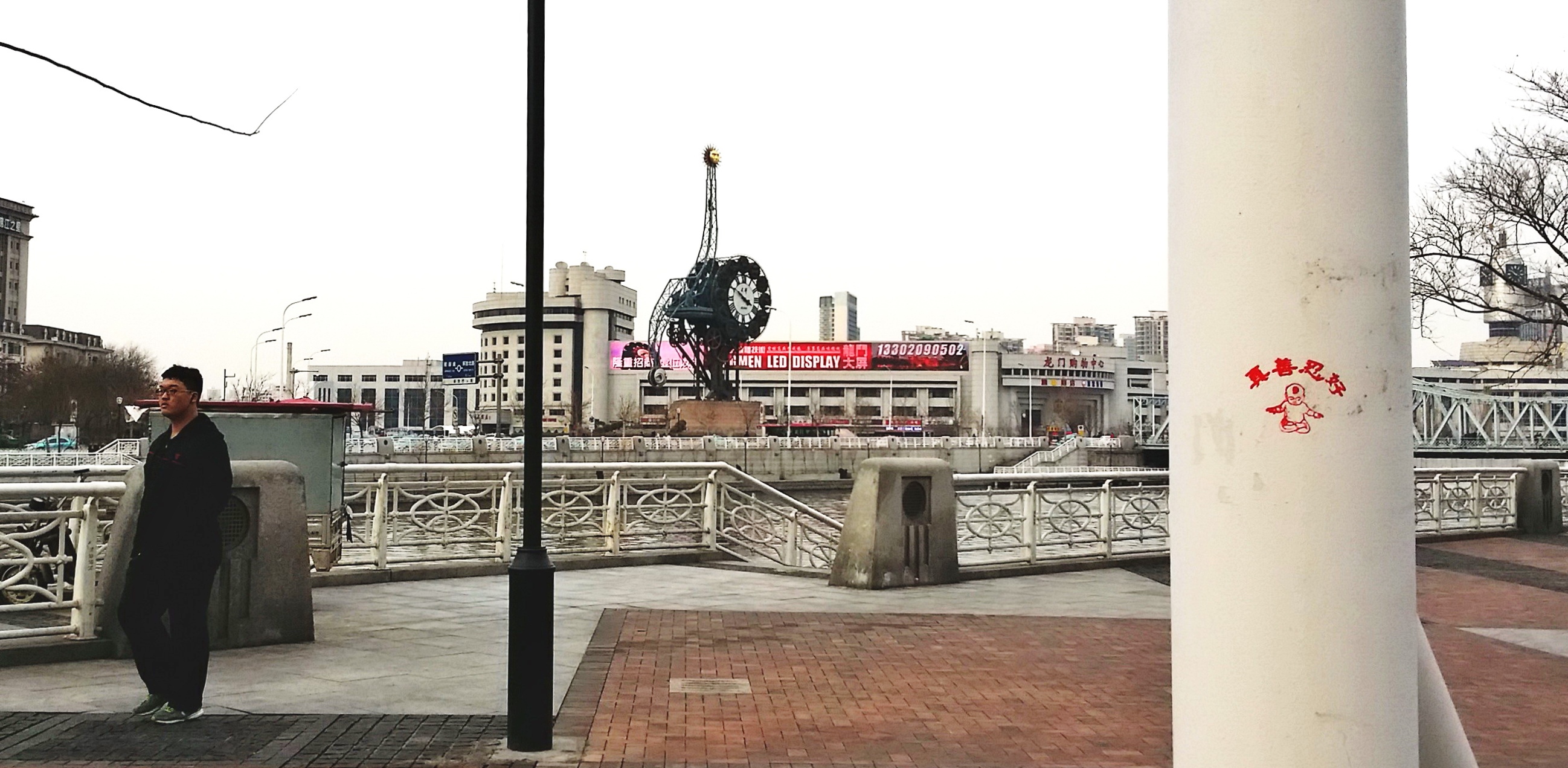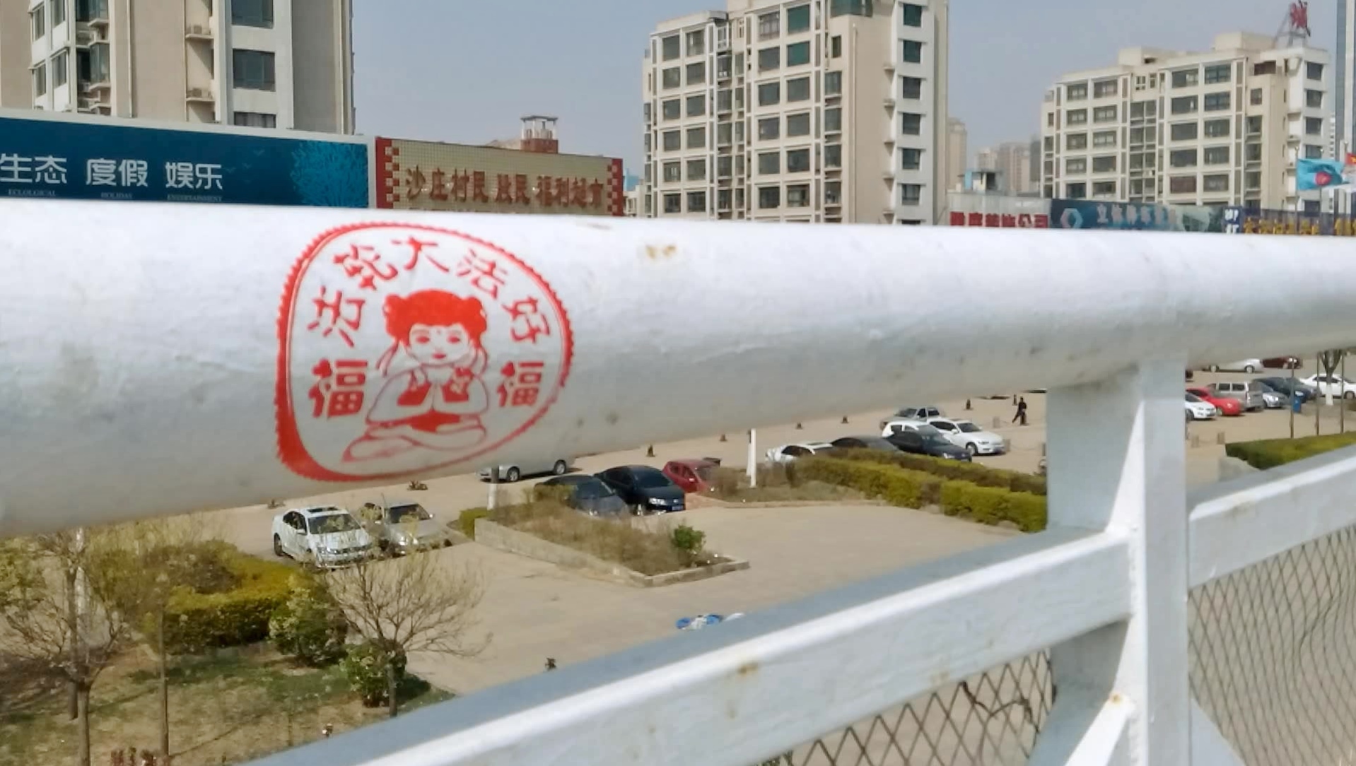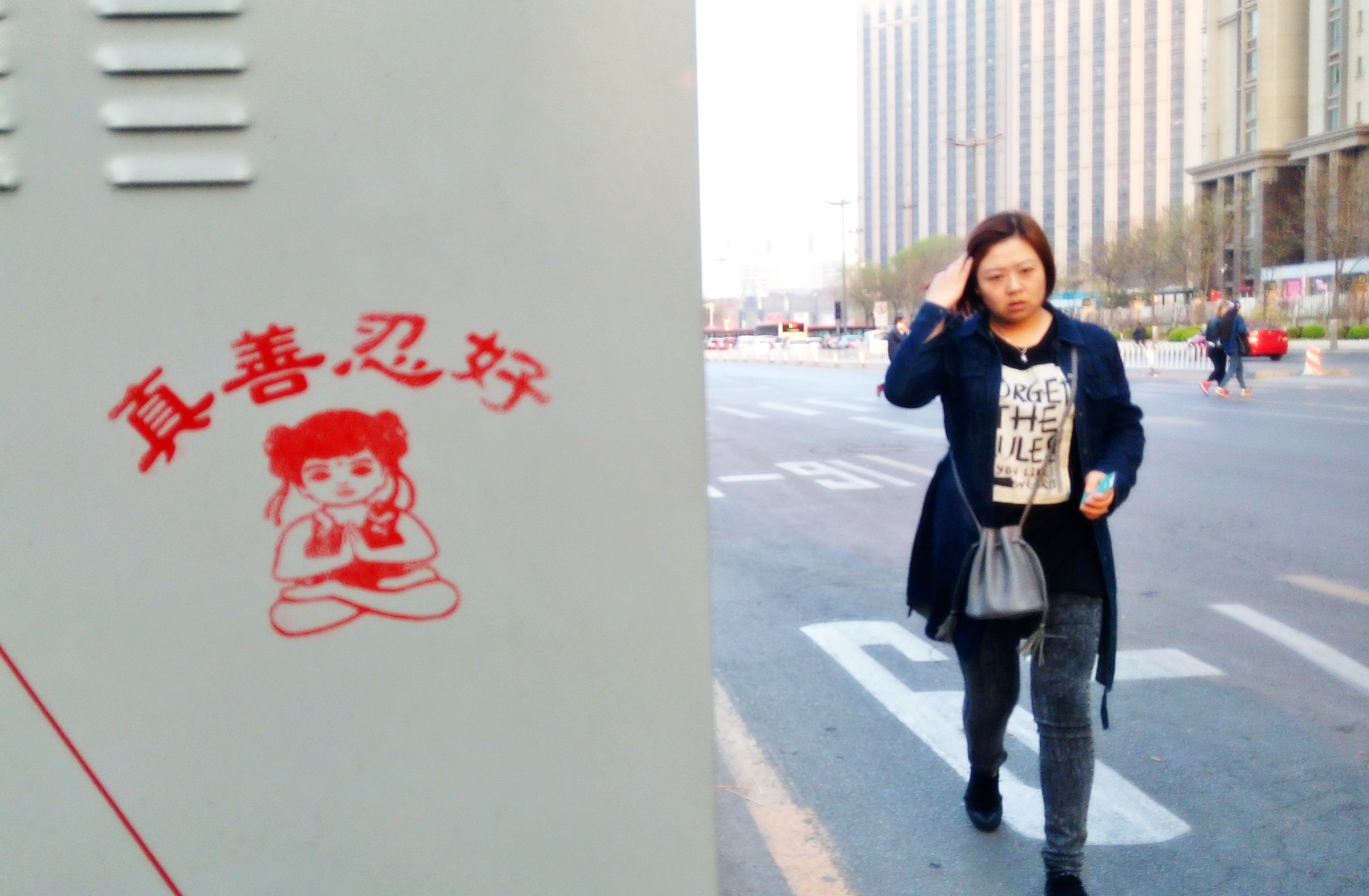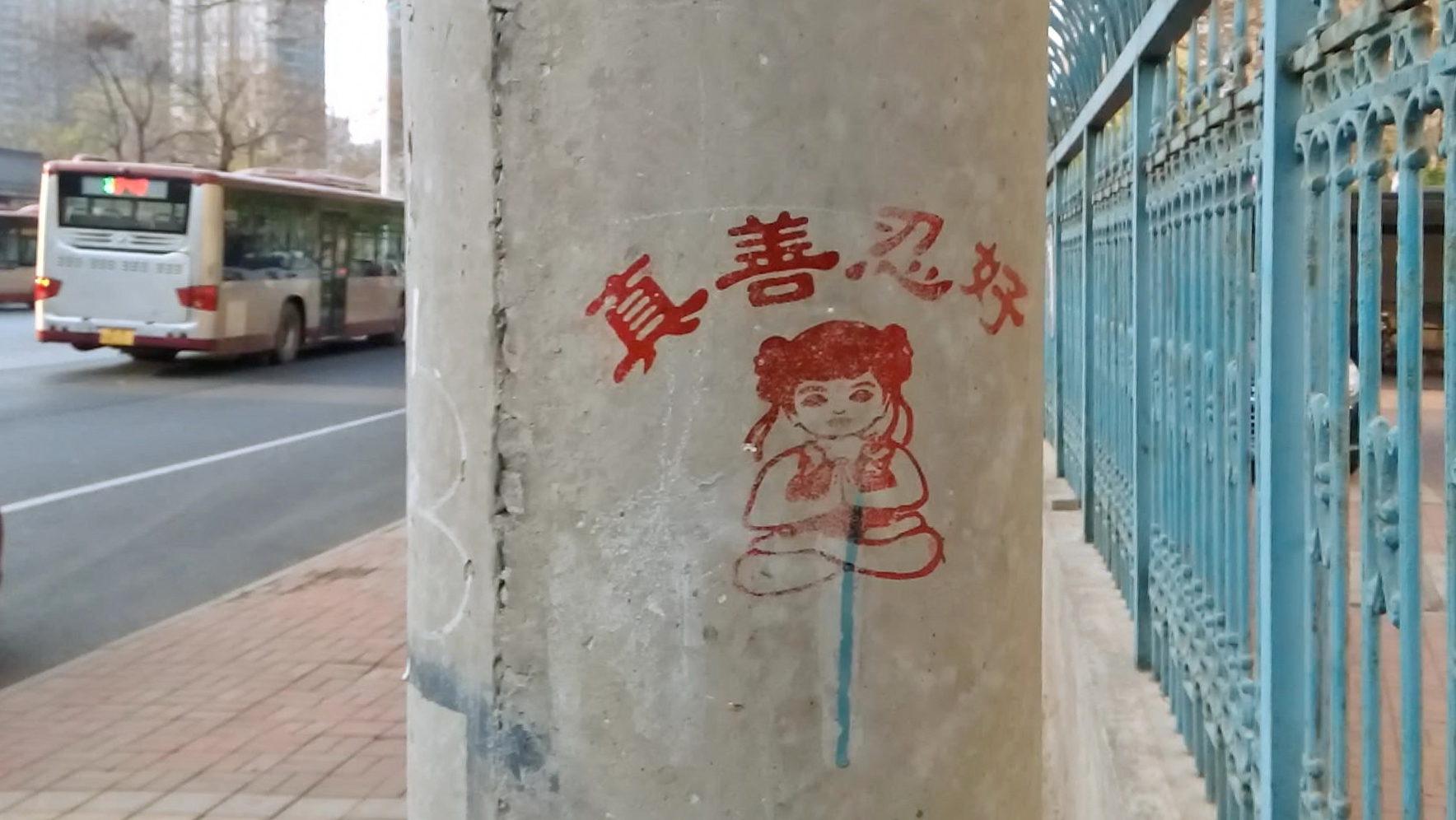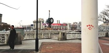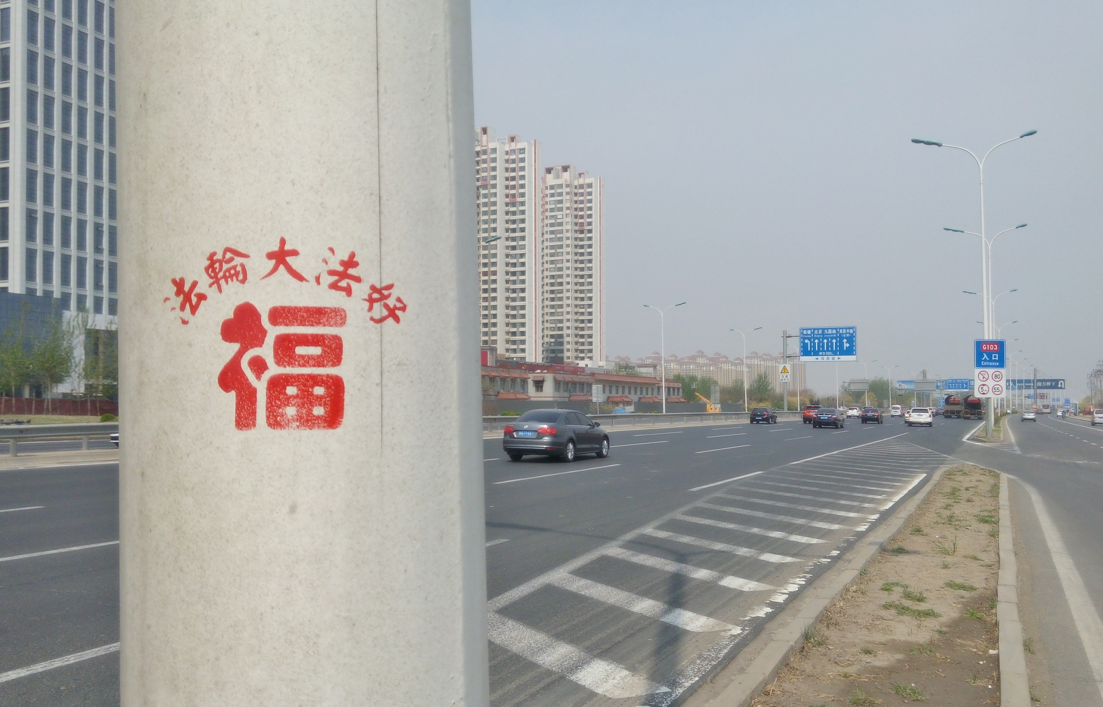 【明慧网二零一六年四月二十七日】天津,二零一六年的春天来的特别早,人们在感叹时间飞快的同时,也在惬意的感受着春风、春雨、树梢的嫩芽及悄悄长出的小草。人们还发现津城还出现了一处处配有天使、童子,莲花和大福字等图案的法轮大法真相标语。它们点缀在灯柱、桥墩、电线杆、墙壁上,给人赏心悦目的美感,也带给人们希望。