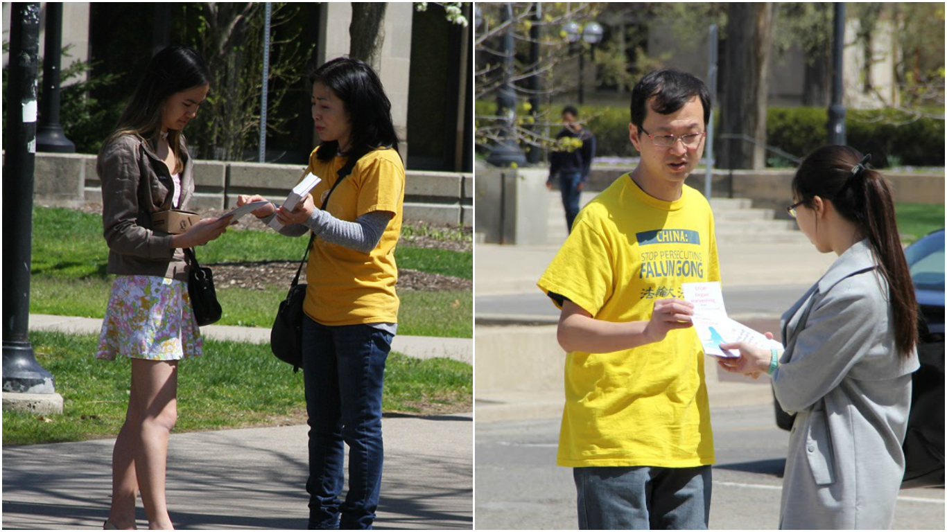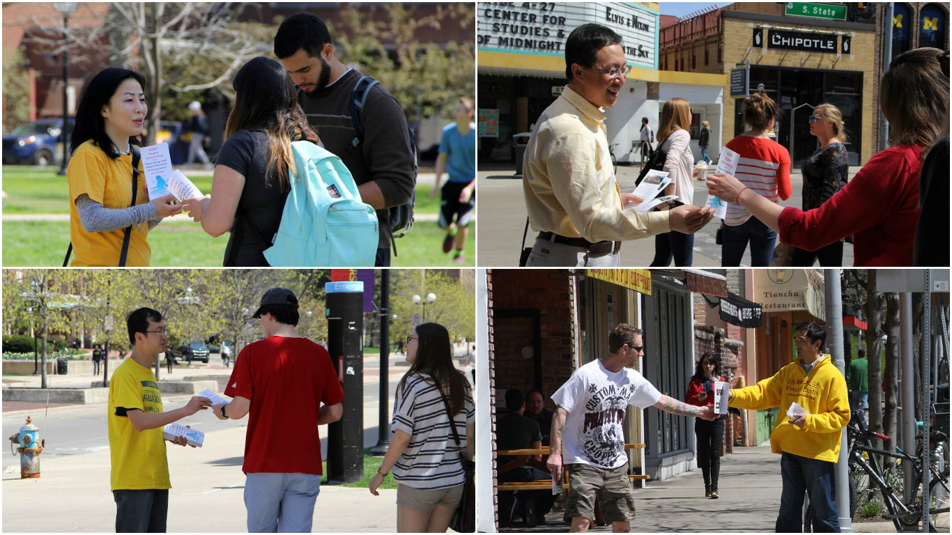 ![]() 密西根大学校园内,民众签名声援反迫害 |