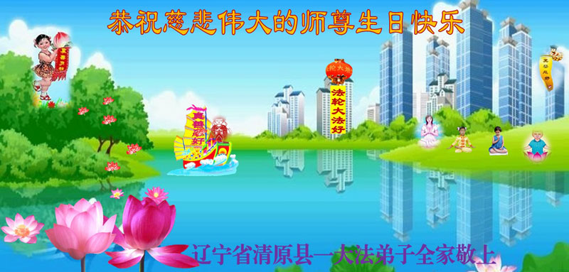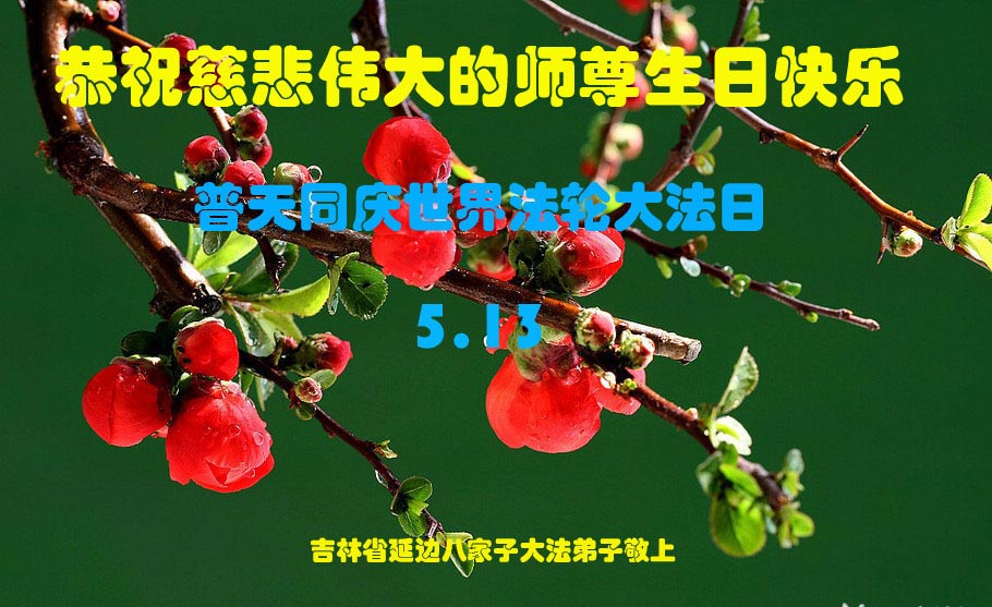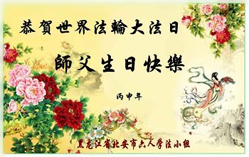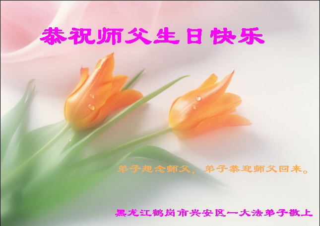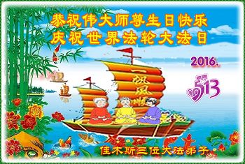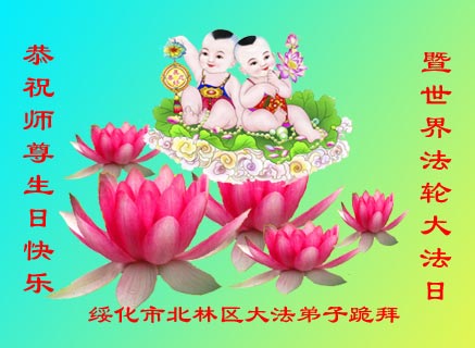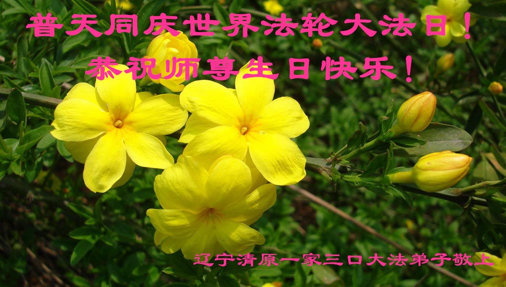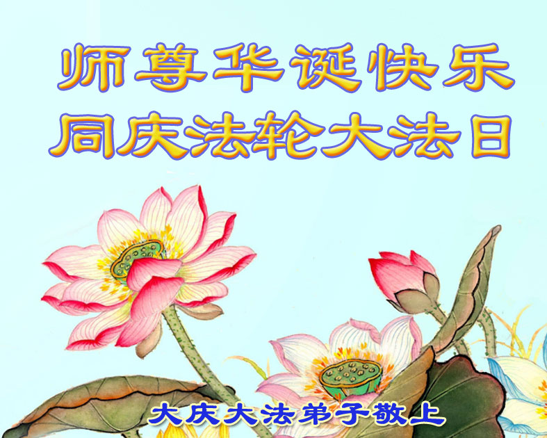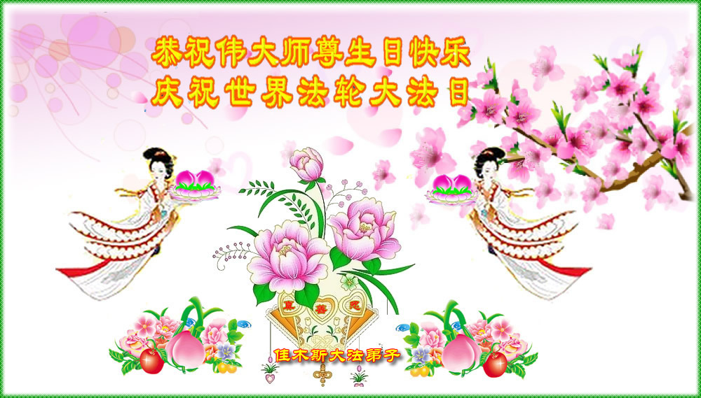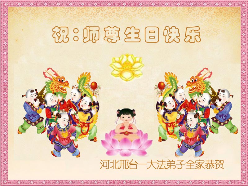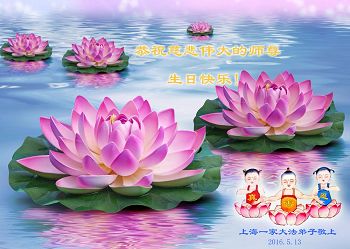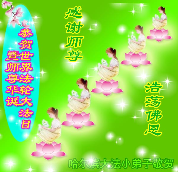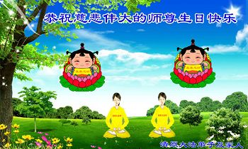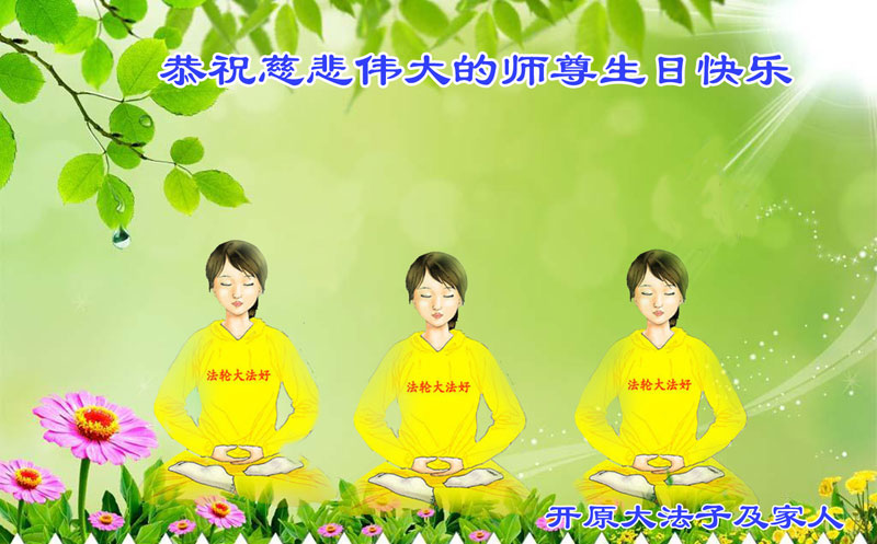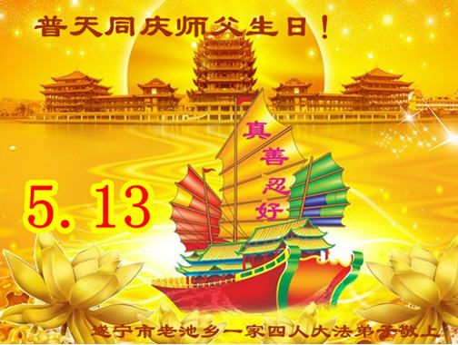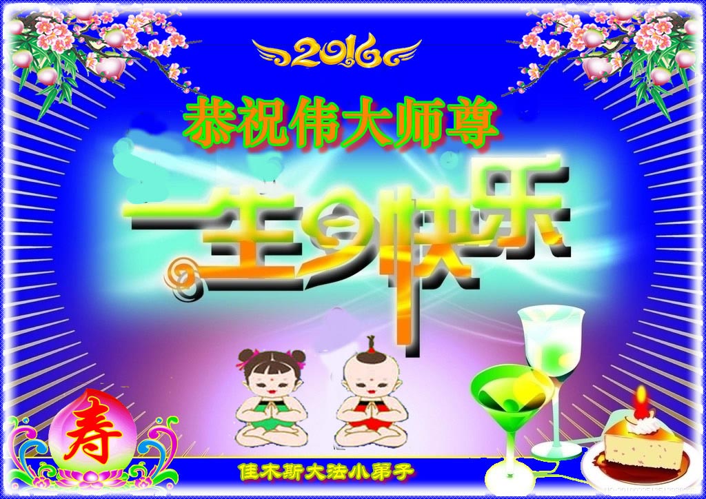 恭贺第十七届世界法轮大法日!恭祝李老师六十五华诞!祝李老师生日快乐!我们全家叩谢李老师赐予的福份!希望法轮功真相能尽快大白于天下,我们满怀喜悦迎接人类新纪元的到来!