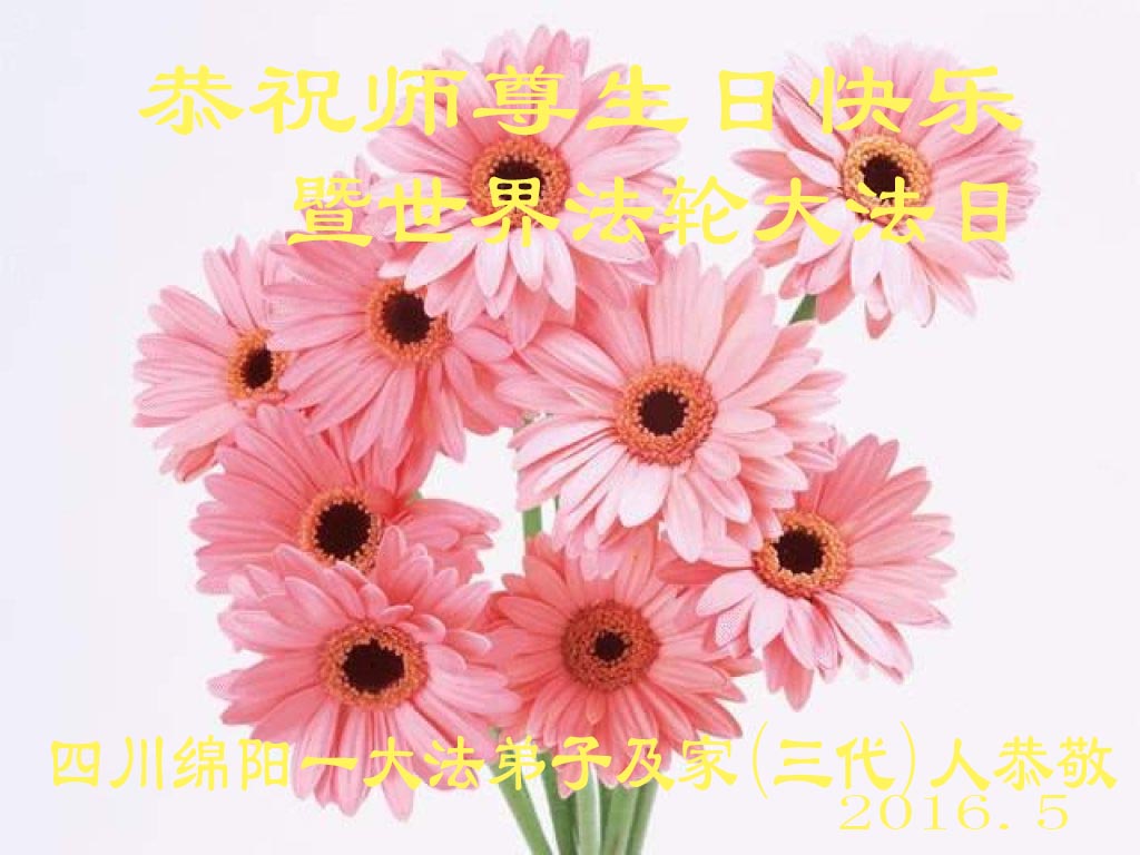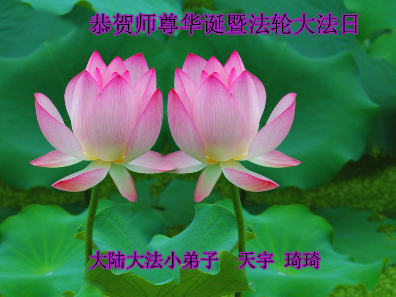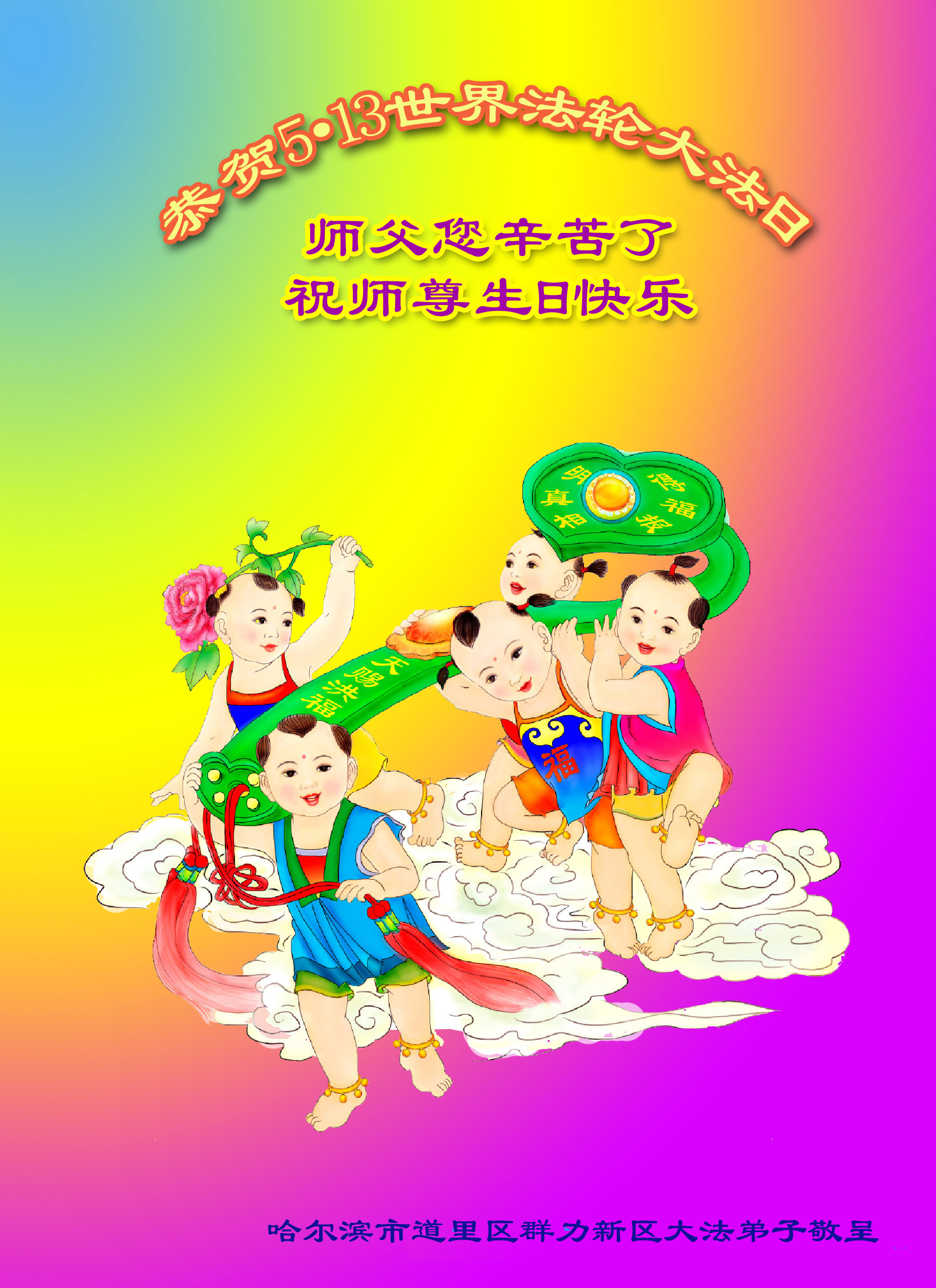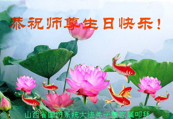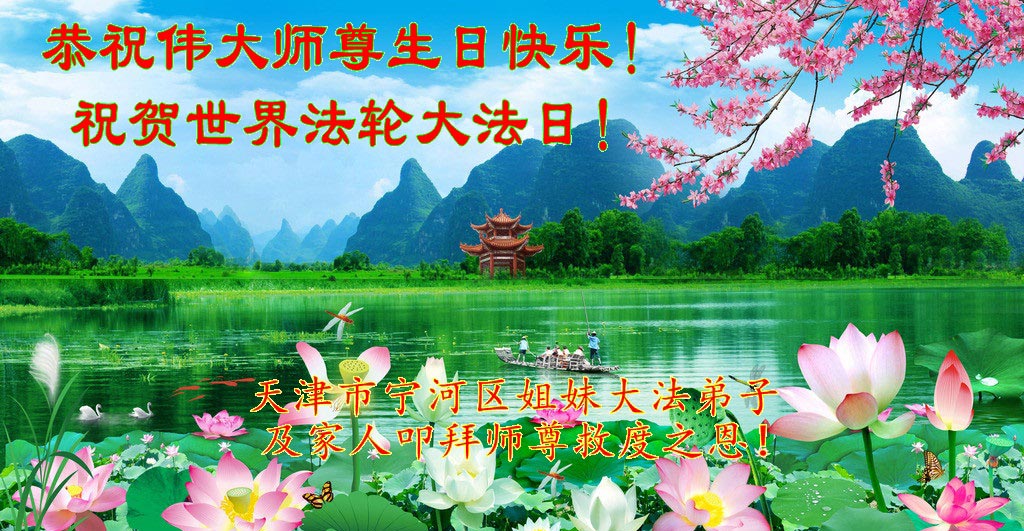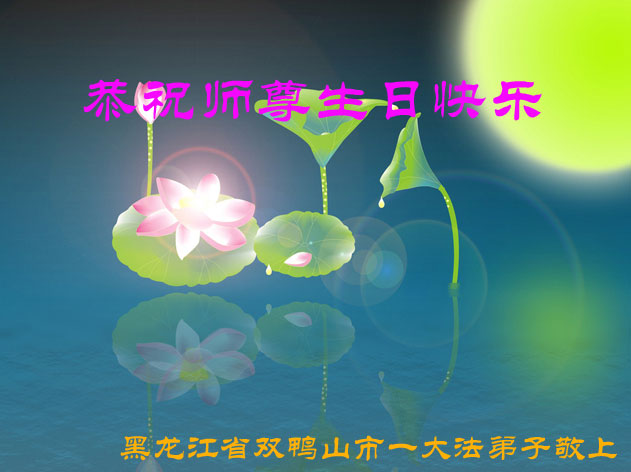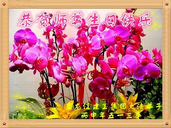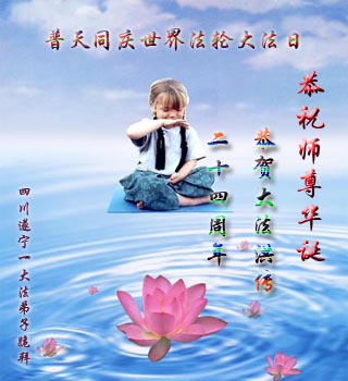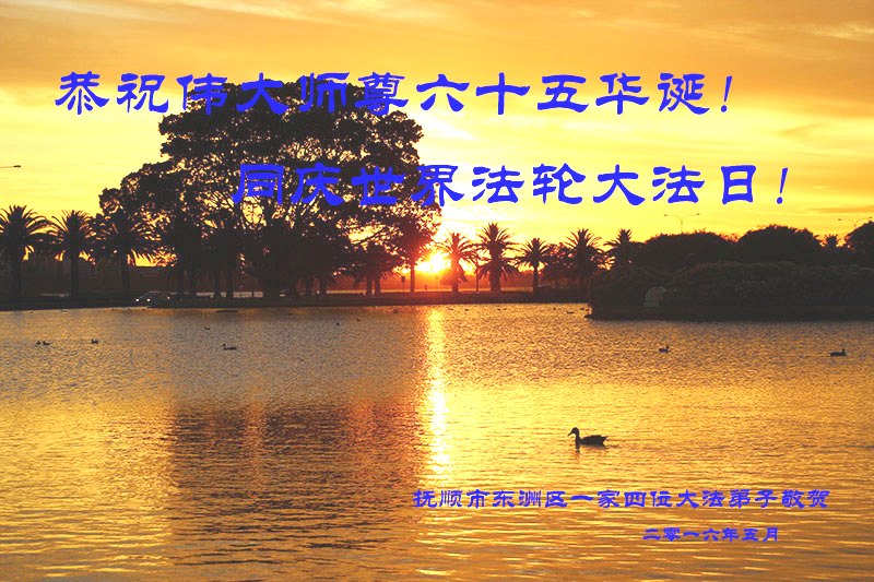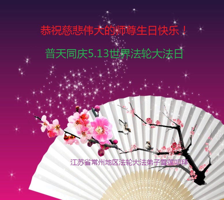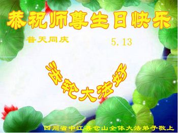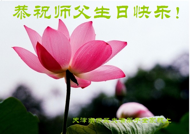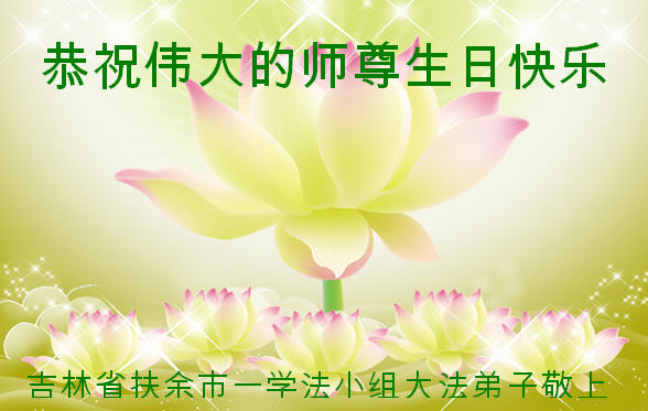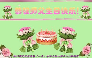 恭贺第十七届世界法轮大法日!恭祝李老师六十五华诞!祝李老师生日快乐!我们全家叩谢李老师赐予的福份!希望法轮功真相能尽快大白于天下,我们满怀喜悦迎接人类新纪元的到来!