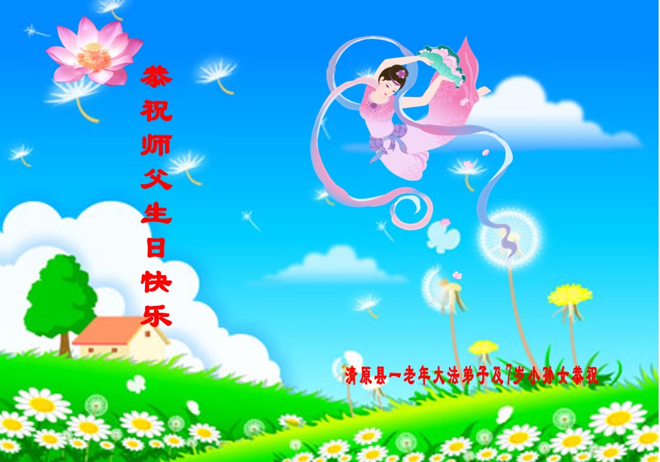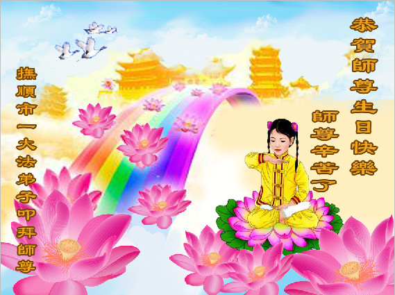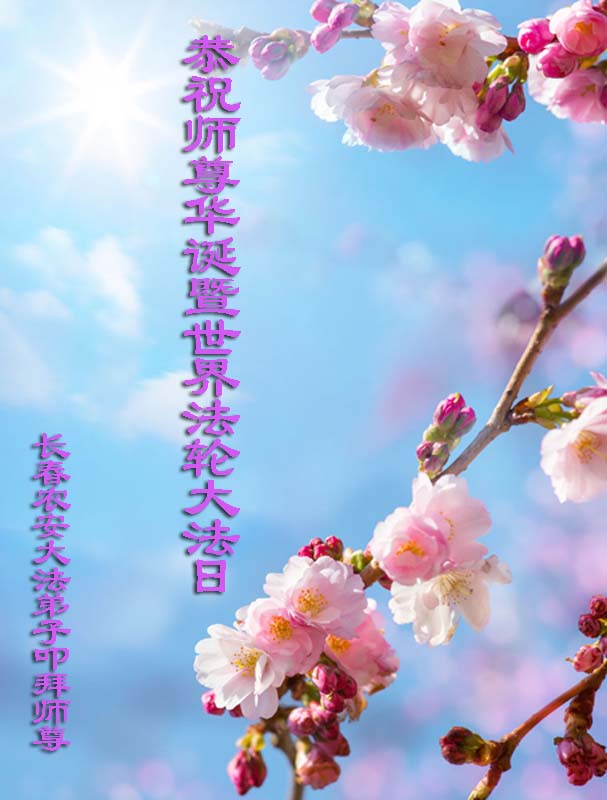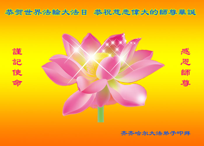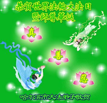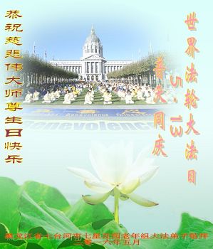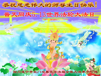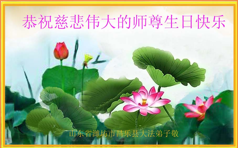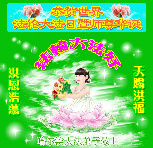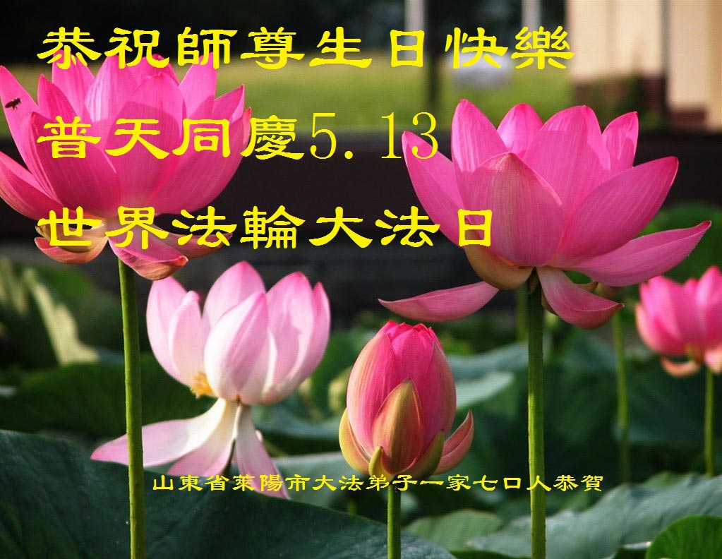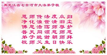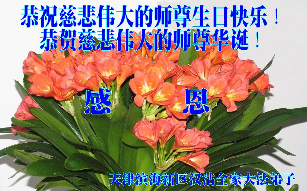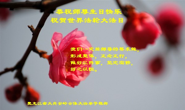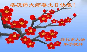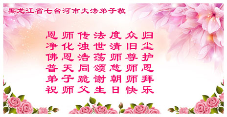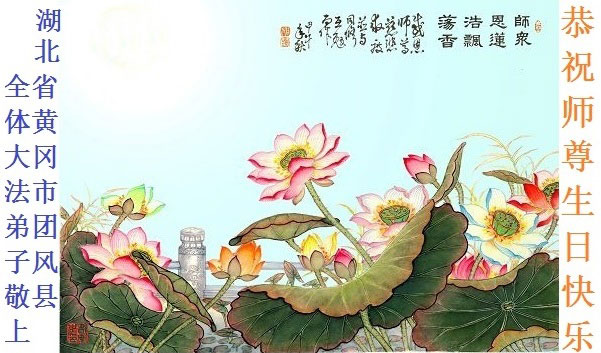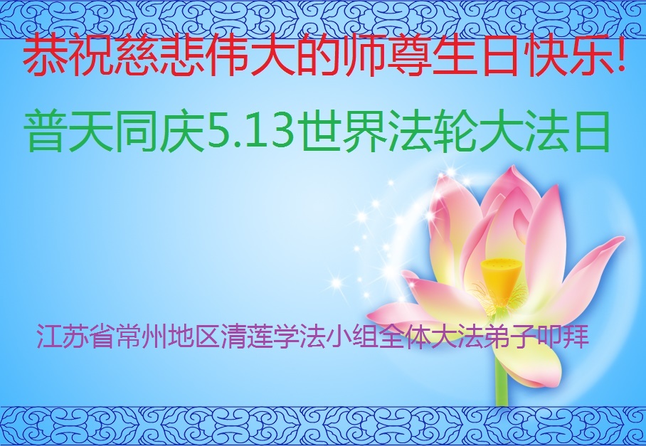 恭贺第十七届世界法轮大法日!恭祝李老师六十五华诞!祝李老师生日快乐!我们全家叩谢李老师赐予的福份!希望法轮功真相能尽快大白于天下,我们满怀喜悦迎接人类新纪元的到来!