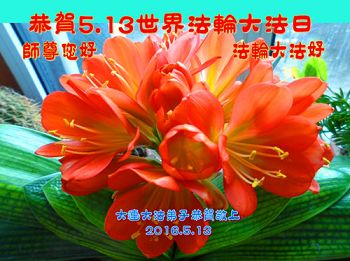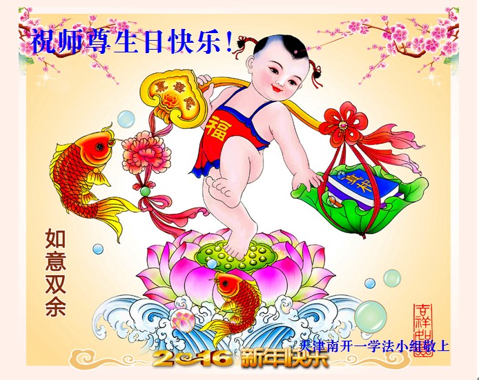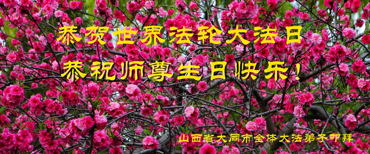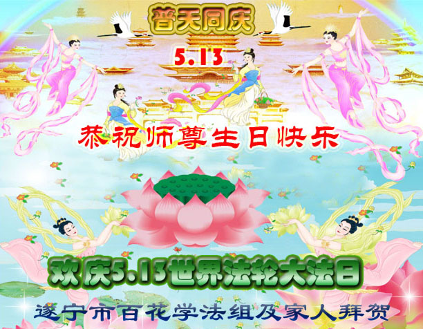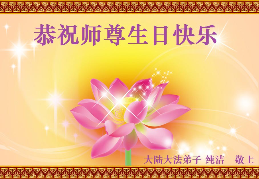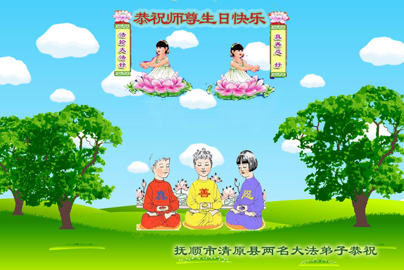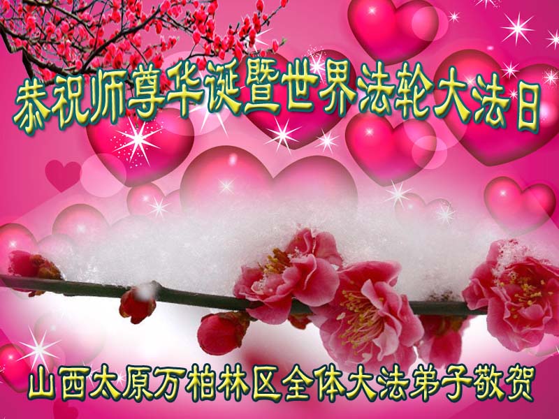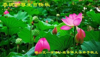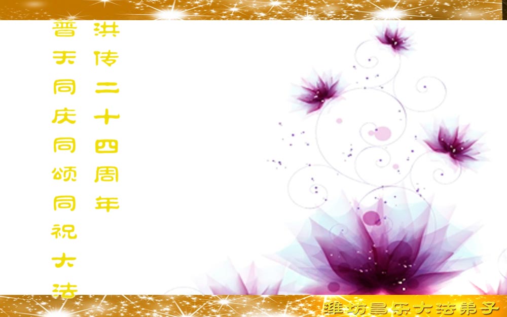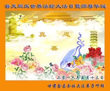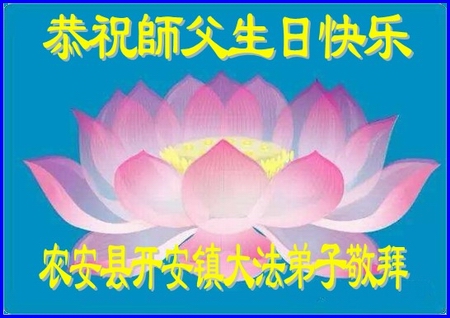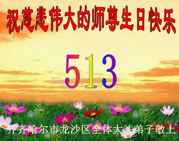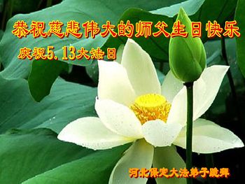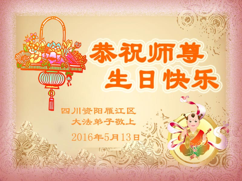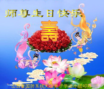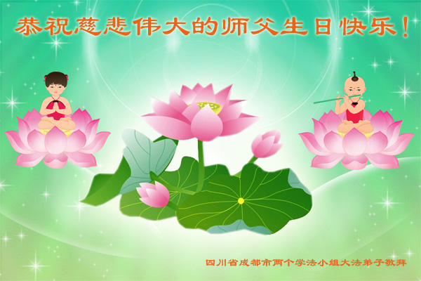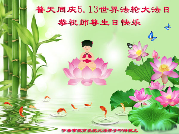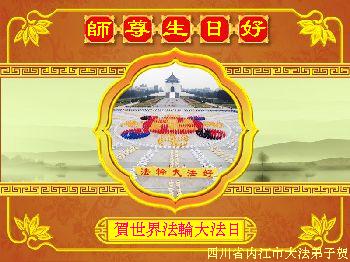 恭贺第十七届世界法轮大法日!恭祝李老师六十五华诞!祝李老师生日快乐!我们全家叩谢李老师赐予的福份!希望法轮功真相能尽快大白于天下,我们满怀喜悦迎接人类新纪元的到来!