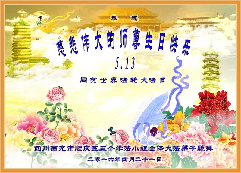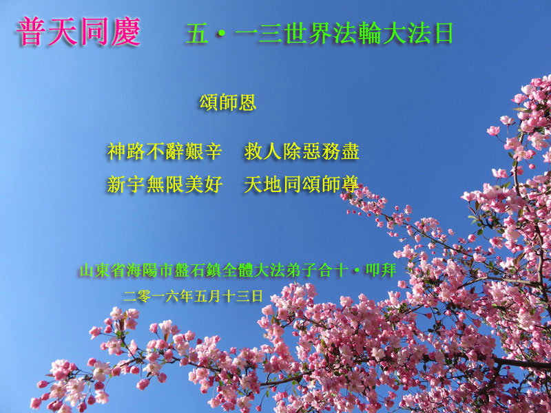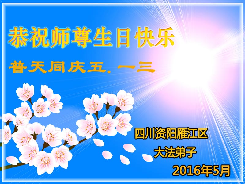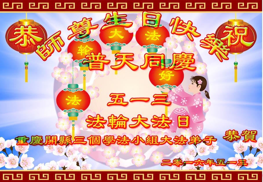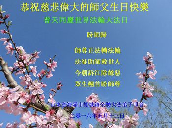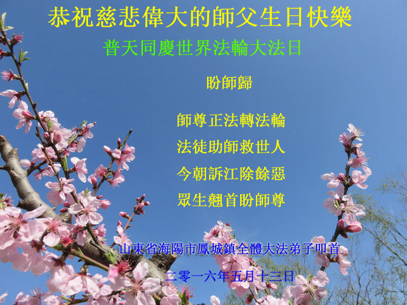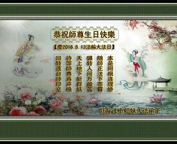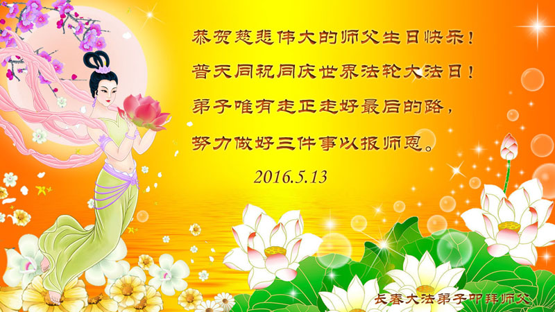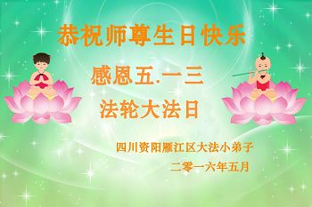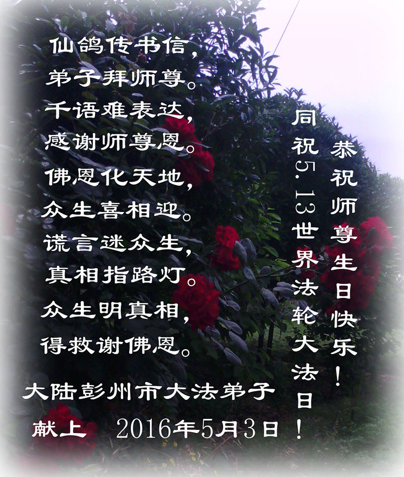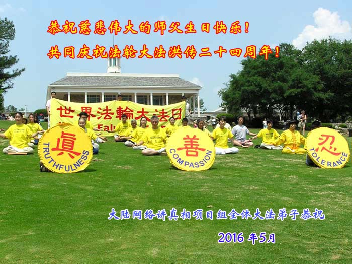 <英文版: http://en.minghui.org/html/articles/2016/5/11/156776.html>大陆百姓恭贺世界法轮大法日暨师尊华诞(11条)