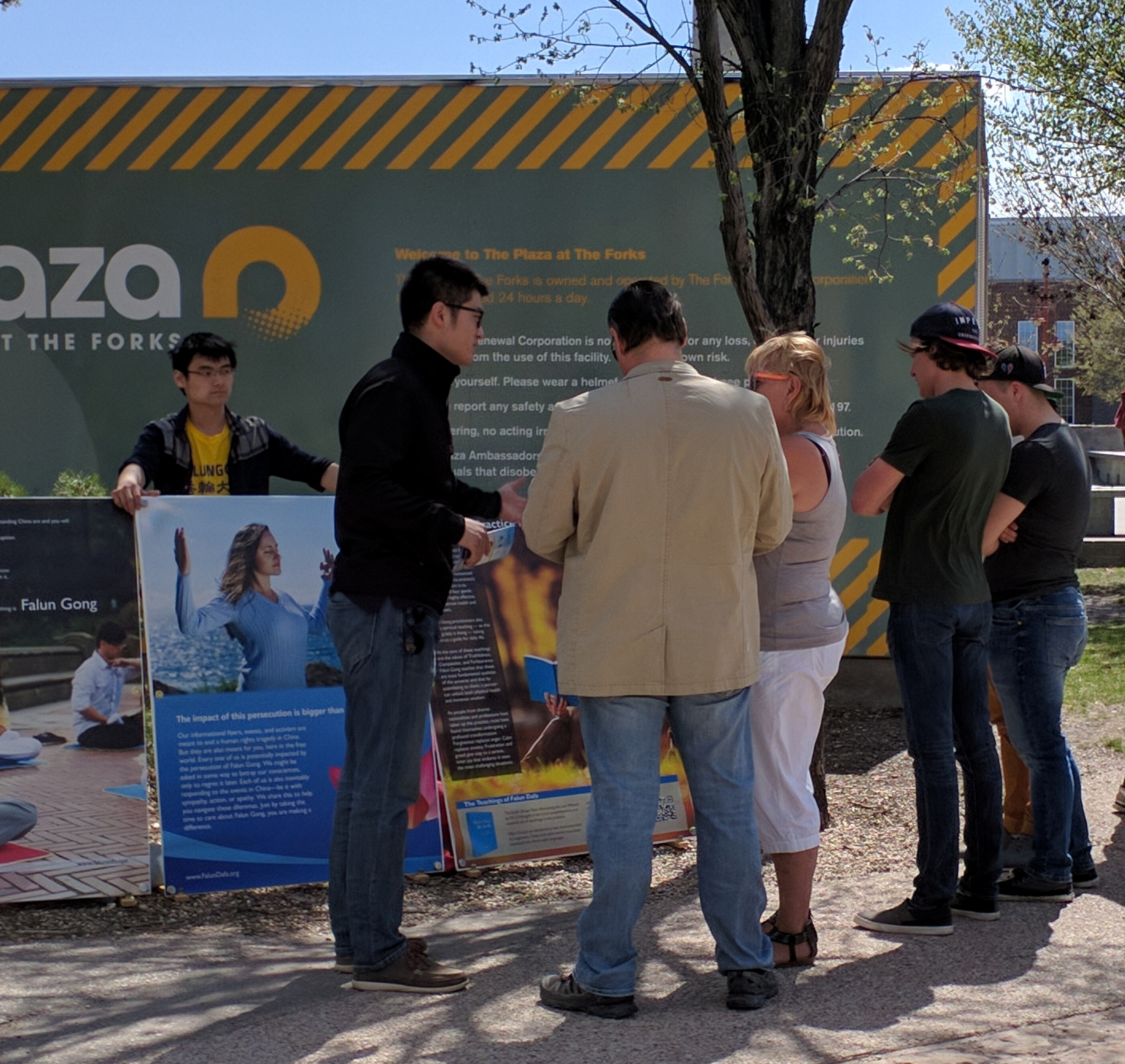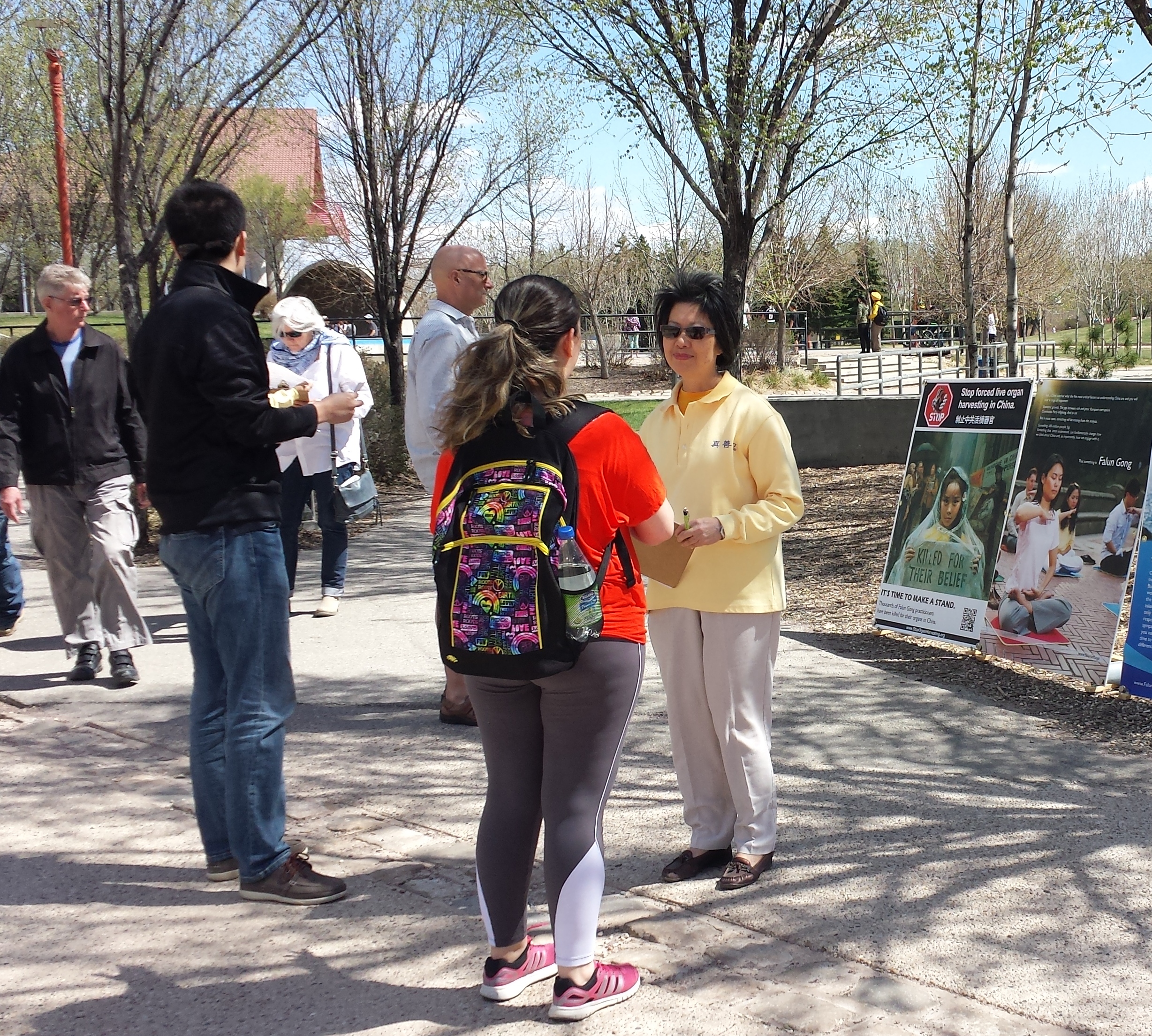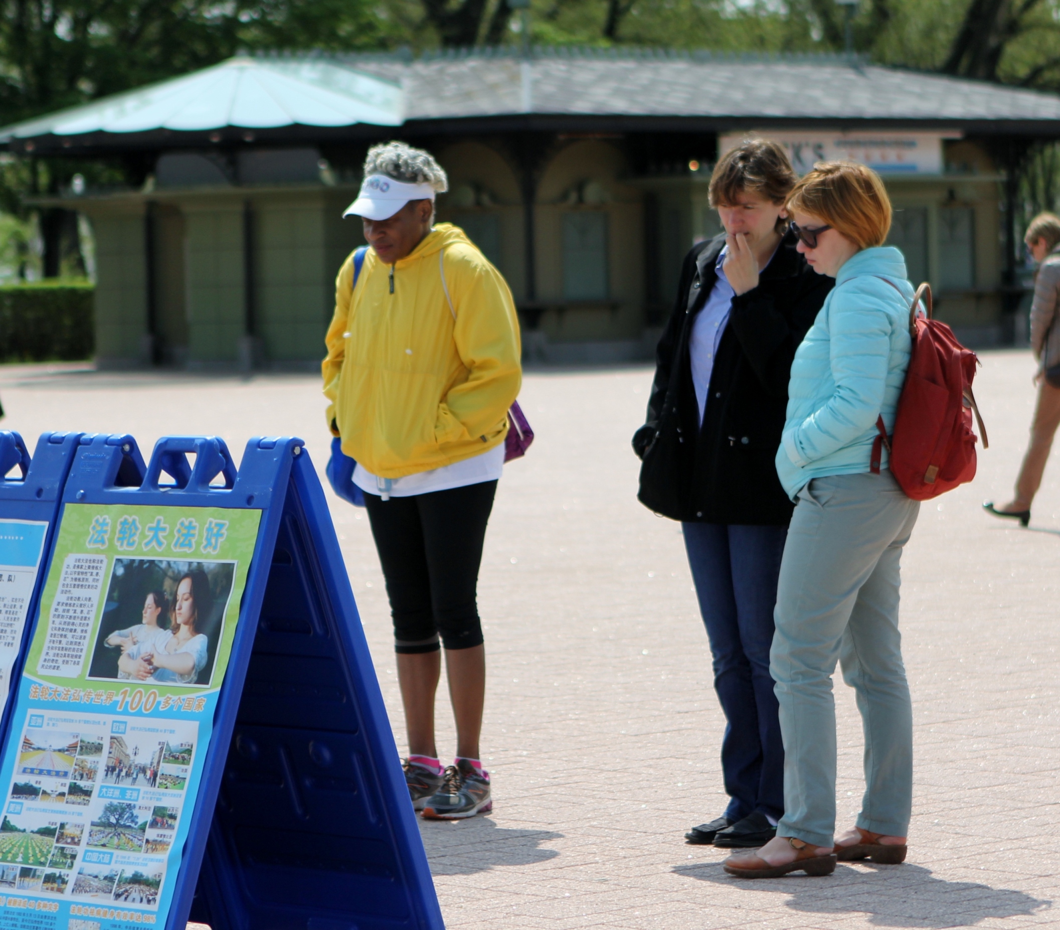 ![]() 图11:法轮功学员并在活动现场周围摆放了真相展板,许多过往游客驻足阅读。 |