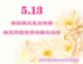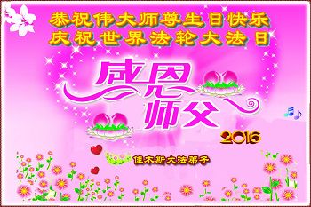 感恩李大师给我及我的家庭带来的巨大福报。我祝李大师生日快乐!祝师父早日回国。祝法轮大法洪传全世界各地。谢谢李师父!谢谢!