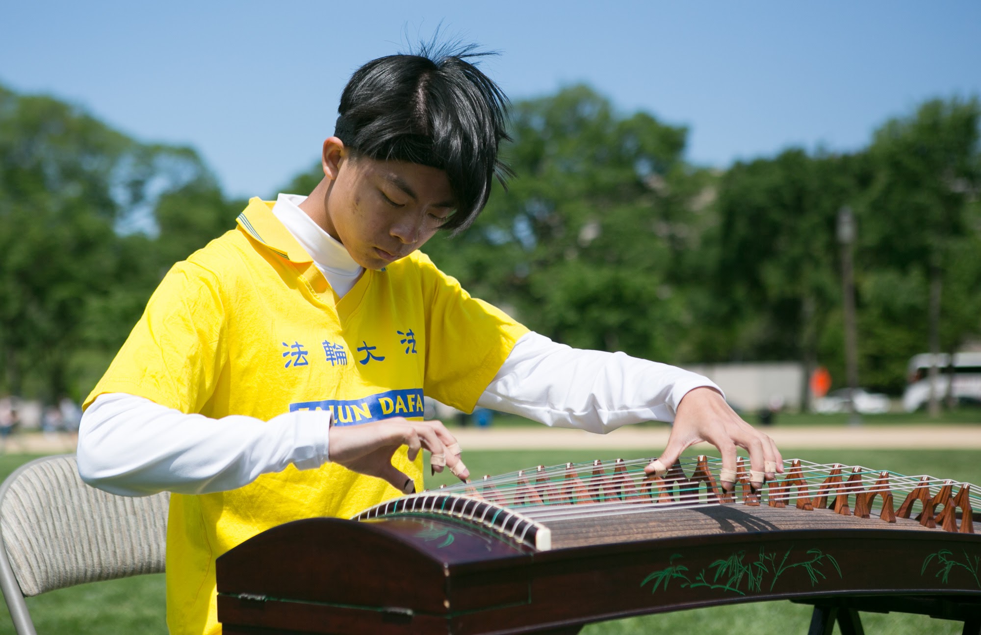 庆典上的节目都是法轮功学员自编自演、精心准备的。十二岁的蔡路易已学了三年半小提琴,他开心的说:“我要用音乐表示对师父的感谢。”他的母亲Jennifer也表演了两首独唱歌曲,Jennifer表示每年都来参与表演,因为不能只在大法中受益,也要略尽绵力,表达对师父的感激。