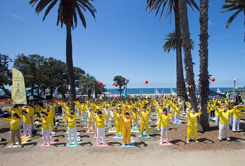 【明慧网二零一六年五月十日】(明慧记者洛杉矶报道)二零一六年五月八日,来自大洛杉矶地区的数百名法轮功学员和家属在游客如织的圣莫妮卡 (Santa Monica) 码头庆祝“五一三”世界法轮大法日。