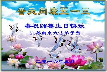 江苏南京大法弟子恭祝慈悲伟大的师尊生日快乐!普天同庆世界法轮大法日!江苏常州大法弟子恭祝师父生日快乐!