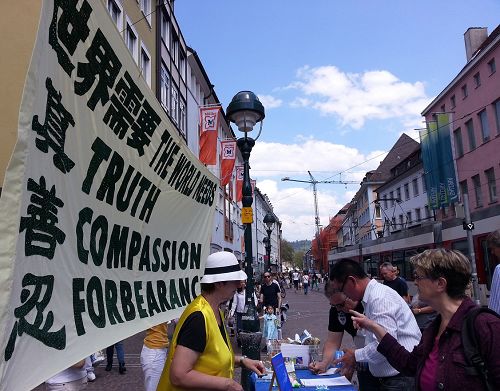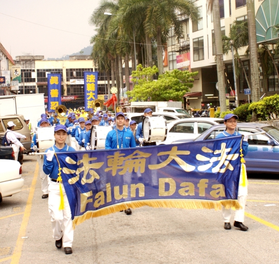 ![]() 图15-20:法轮功学员希望民众了解真相,在游行队伍中打出了揭迫害、唤良知、启善念、劝三退,及全球控告迫害元凶江泽民等横幅。 |