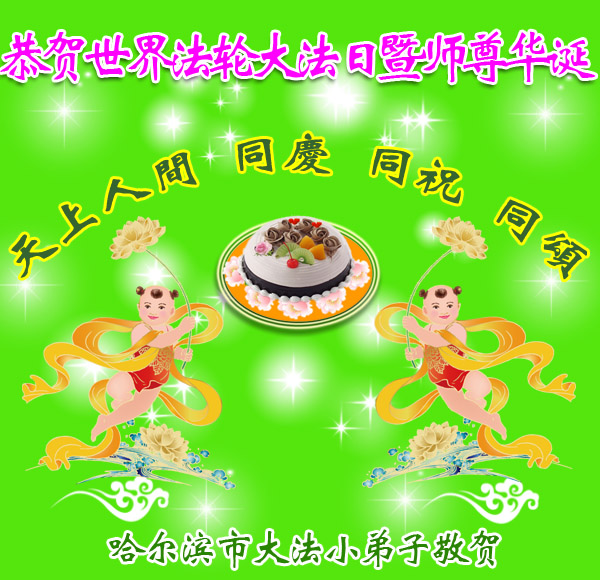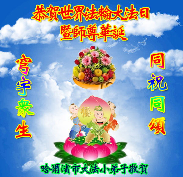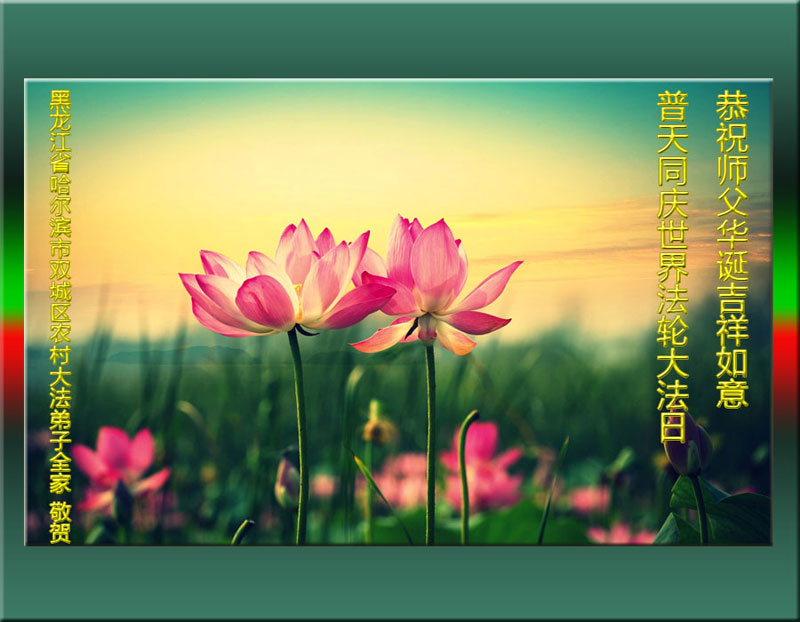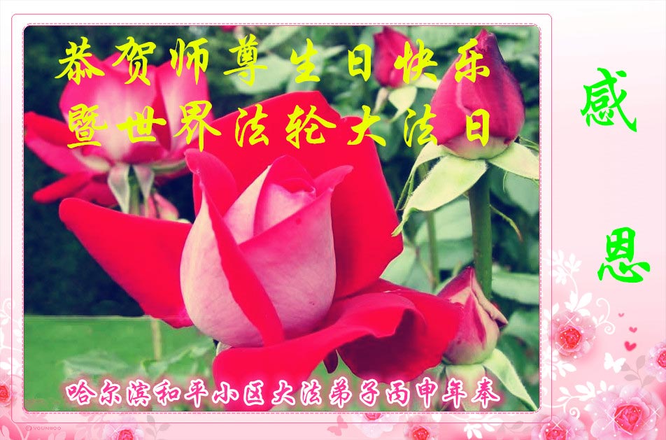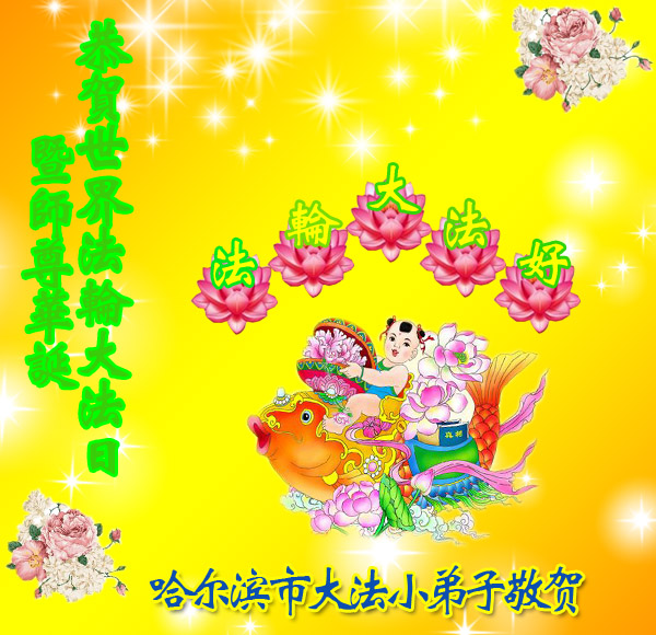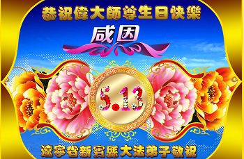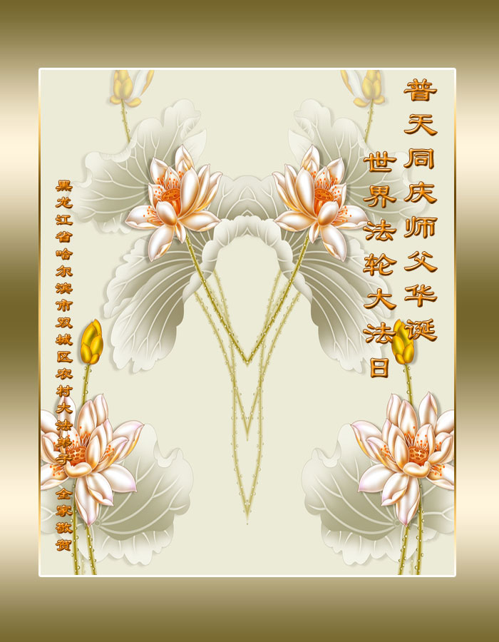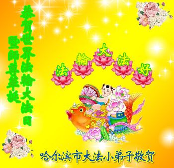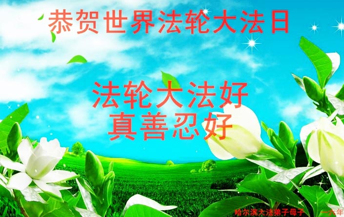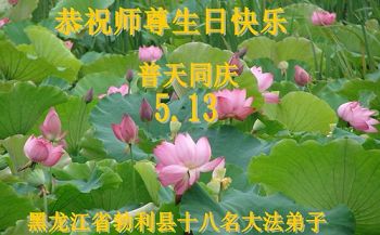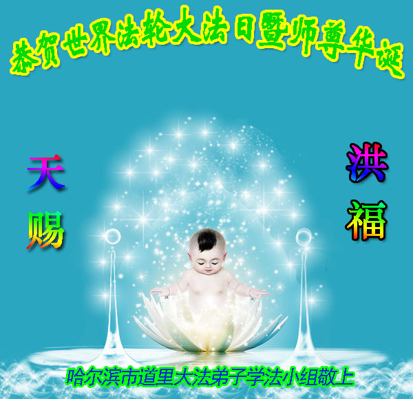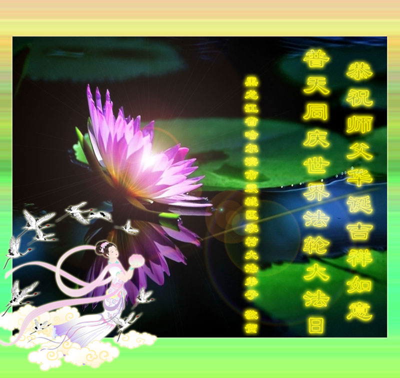 在喜迎世界法轮大法日的同时,也迎来了为弟子和众生承担一切罪业、慈悲伟大的师尊六十五华诞,在此宾县教育系统全体大法弟子恭祝:师尊生日快乐!全球欢庆法轮大法日!弟子感恩师父!