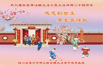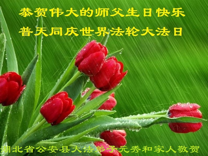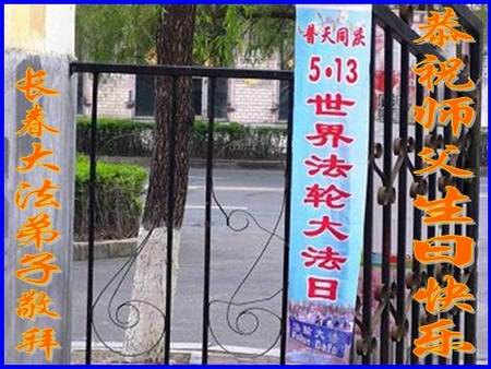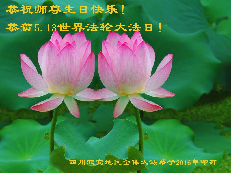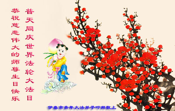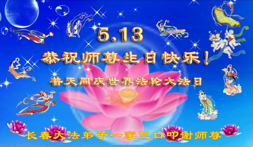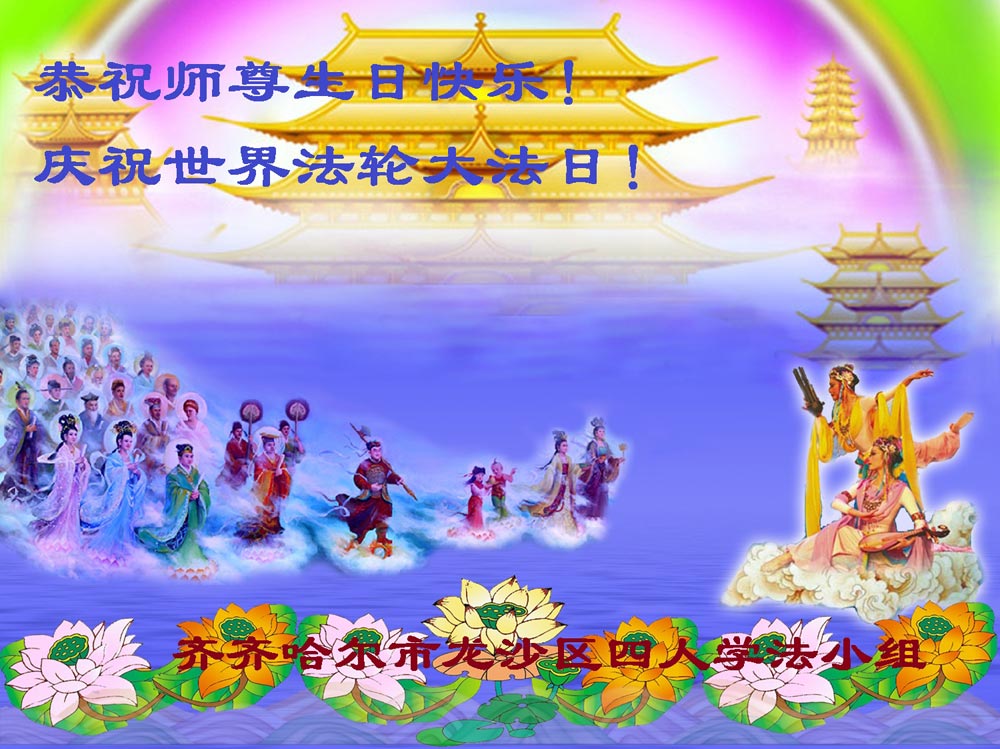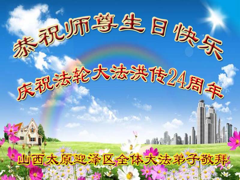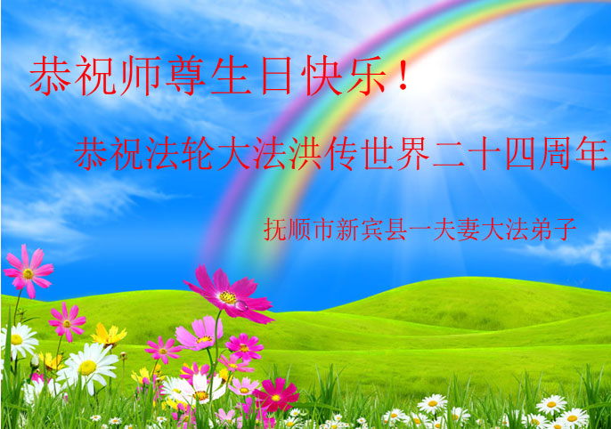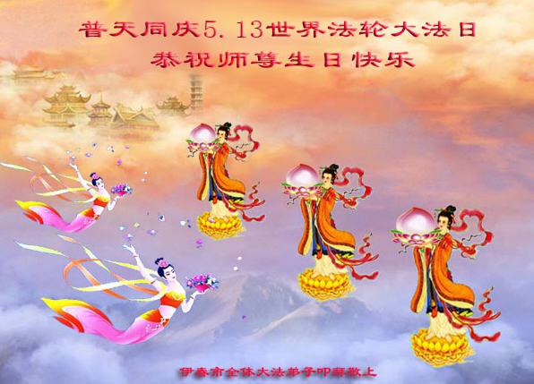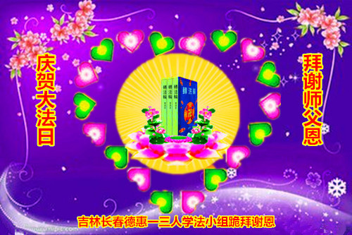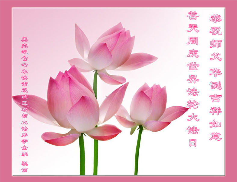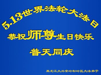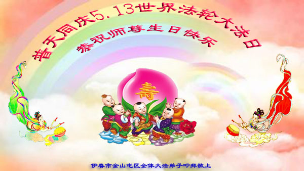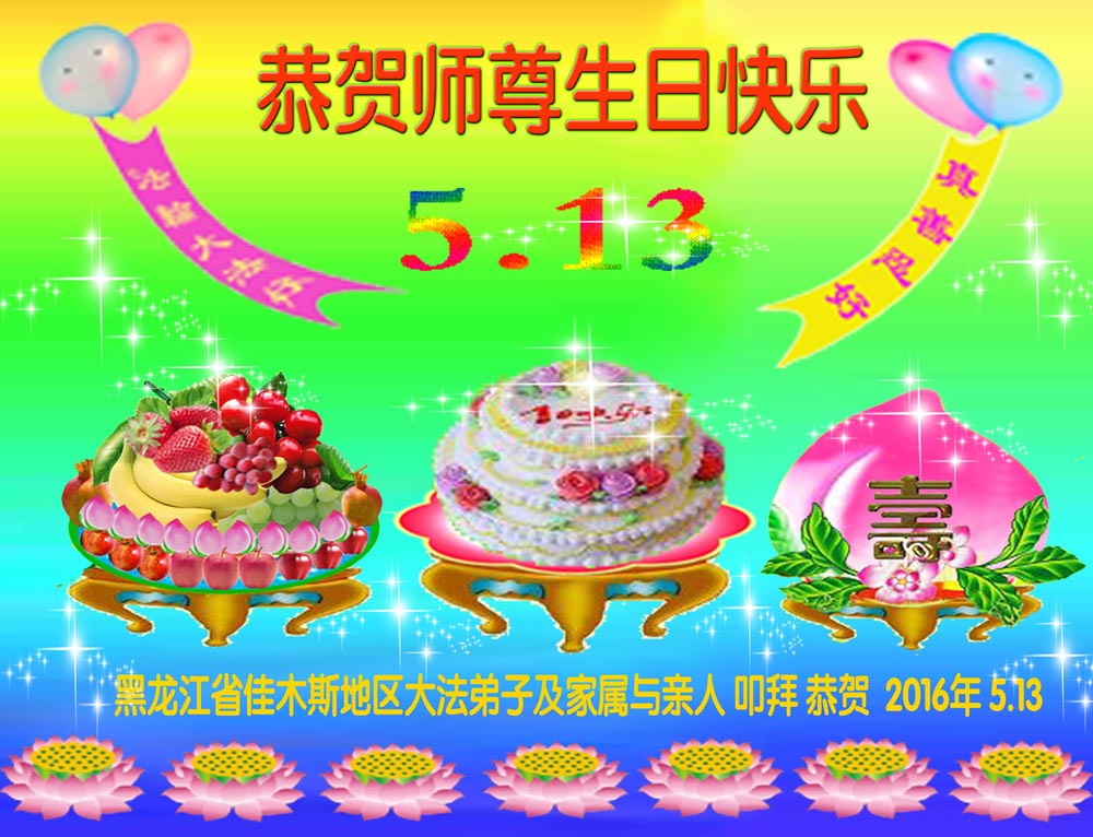 在喜迎世界法轮大法日的同时,也迎来了为弟子和众生承担一切罪业、慈悲伟大的师尊六十五华诞,在此宾县教育系统全体大法弟子恭祝:师尊生日快乐!全球欢庆法轮大法日!弟子感恩师父!