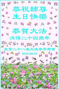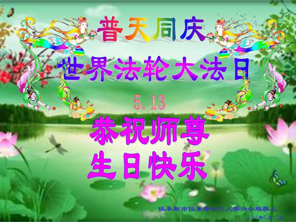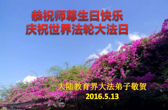 <英文版: http://en.minghui.org/html/articles/2016/5/12/156809.html>教育系统大法弟子恭贺世界法轮大法日暨师尊华诞(23条)