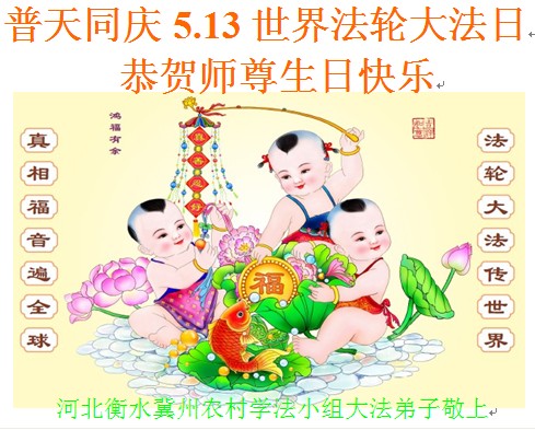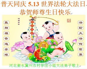 河北乡村大法弟子们感恩师父的慈悲救度!恭祝慈悲伟大的师尊生日快乐!庆祝法轮大法洪传二十四周年!庆祝5.13世界法轮大法日!