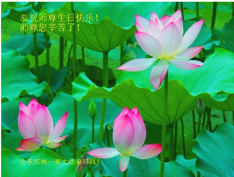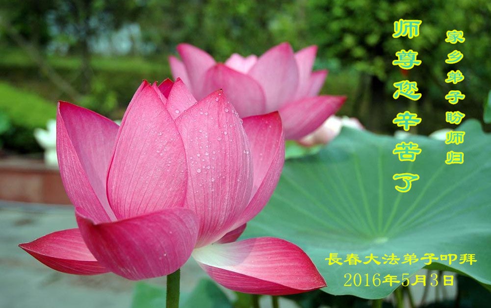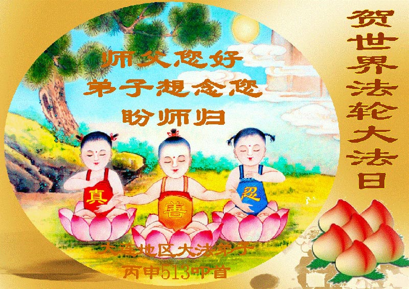 感谢师父救度之恩,弟子们想念师父,盼望师父早日回国。弟子们一定不放松修炼,抓紧讲真相多救人。