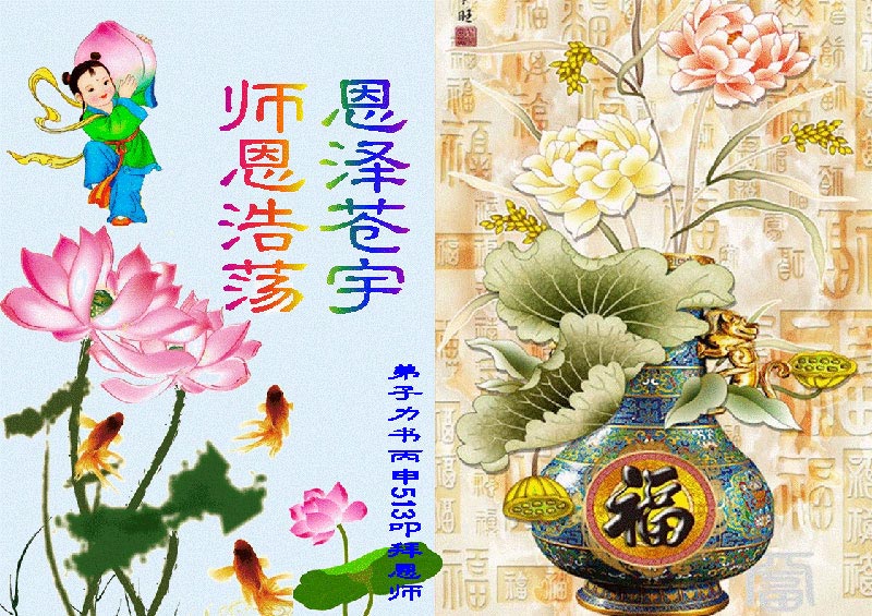 五月百花香 十三甘露降 天上人间感恩 诗书词赋普华章 万语千言难尽颂 师恩浩荡 恩赐十方 洪恩无量 苦海度归航 三界更新 新宇从组 恒古感恩师尊 法轮大法炼金刚 五千文明长 |