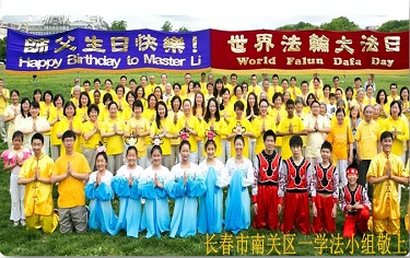 长春吉林大学、东北师大全体大法弟子跪拜合十:
